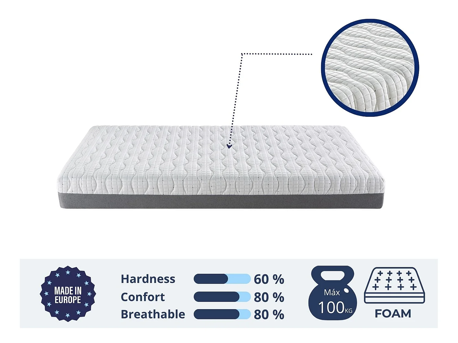 Colchon medical 150X180 ARTICULADO, Altura 21 CM, relajacion muscular, anti stress y ergonomico. Firmeza 3/5 Media