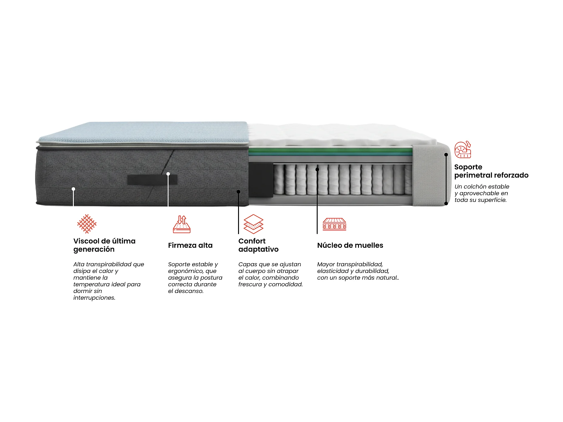 Colchón Morfeo VisCool 160x200 - Híbrido muelles ensacados y viscoelástica