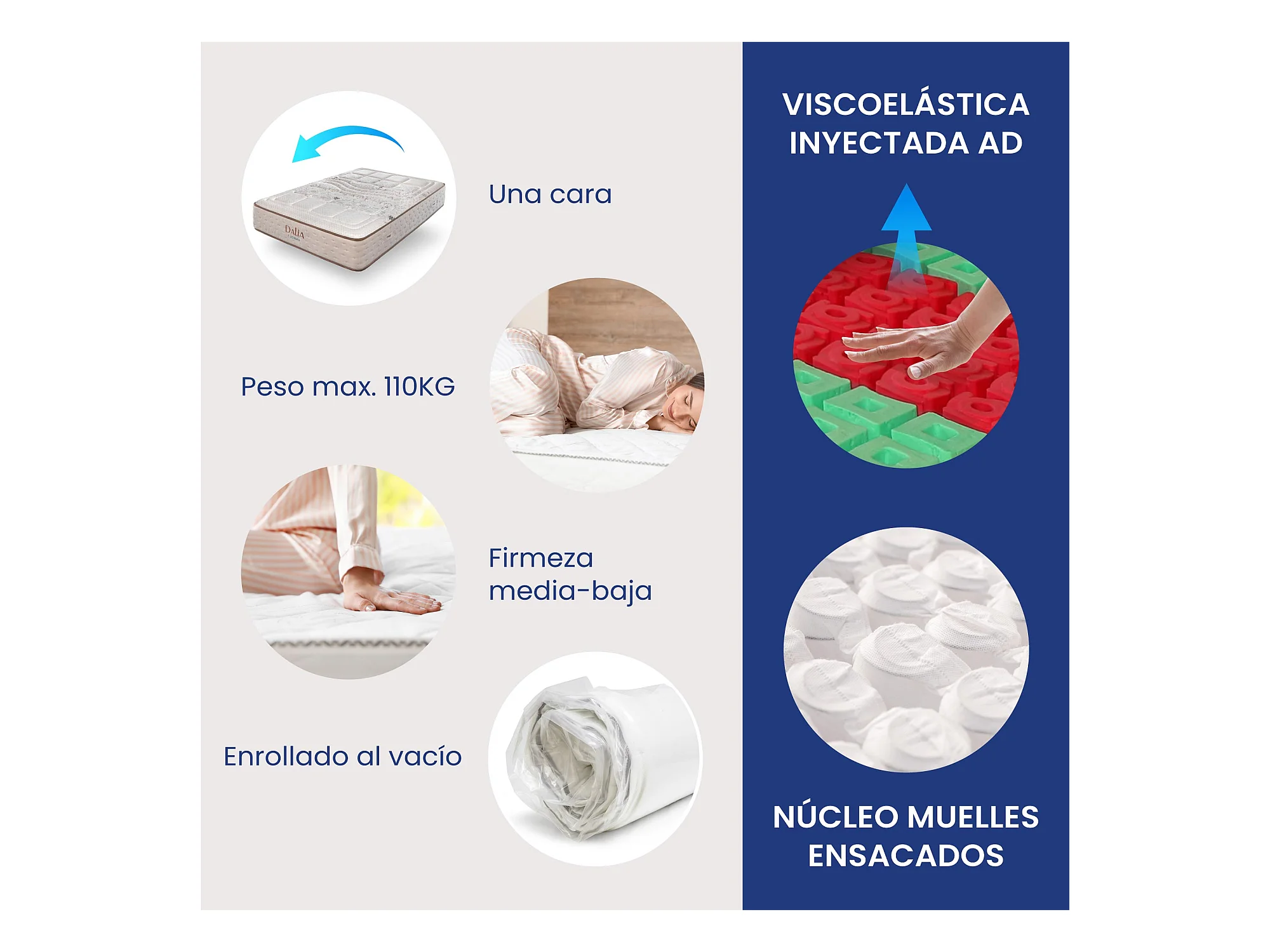 Colchón Visco Inyectada Muelles Ensacados Dalia de SonnoMattress 135x190x33