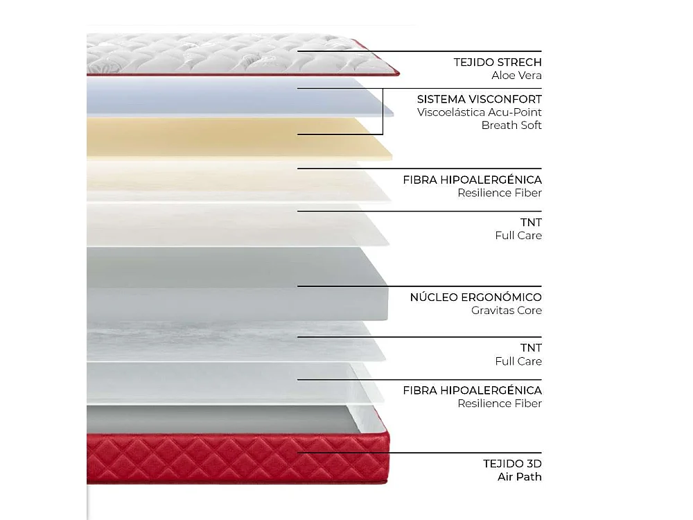 Colchón Viscoelástico 140x200 altura:15cm Mulhacén Burdeos - Nalui