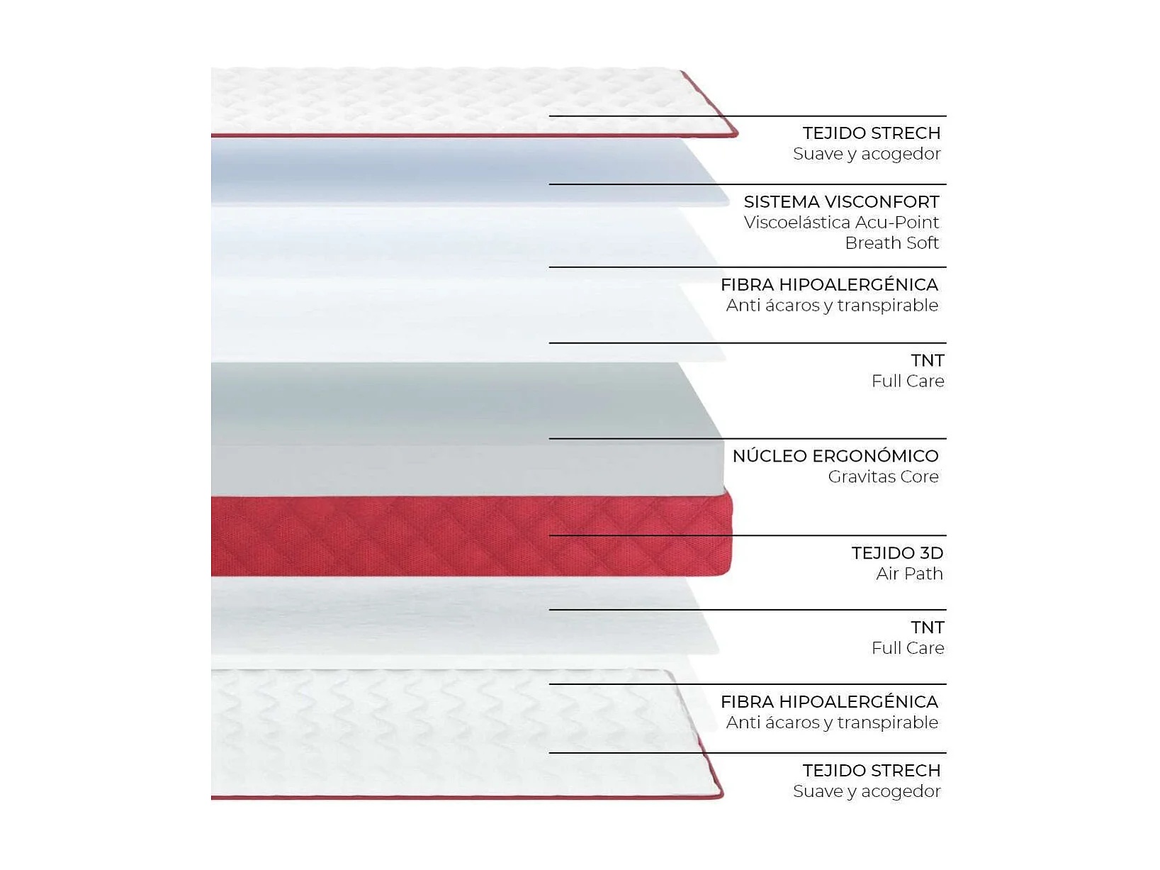 Colchon 180x200 viscoelástic - Altura 20 cm - Rigidez H3
