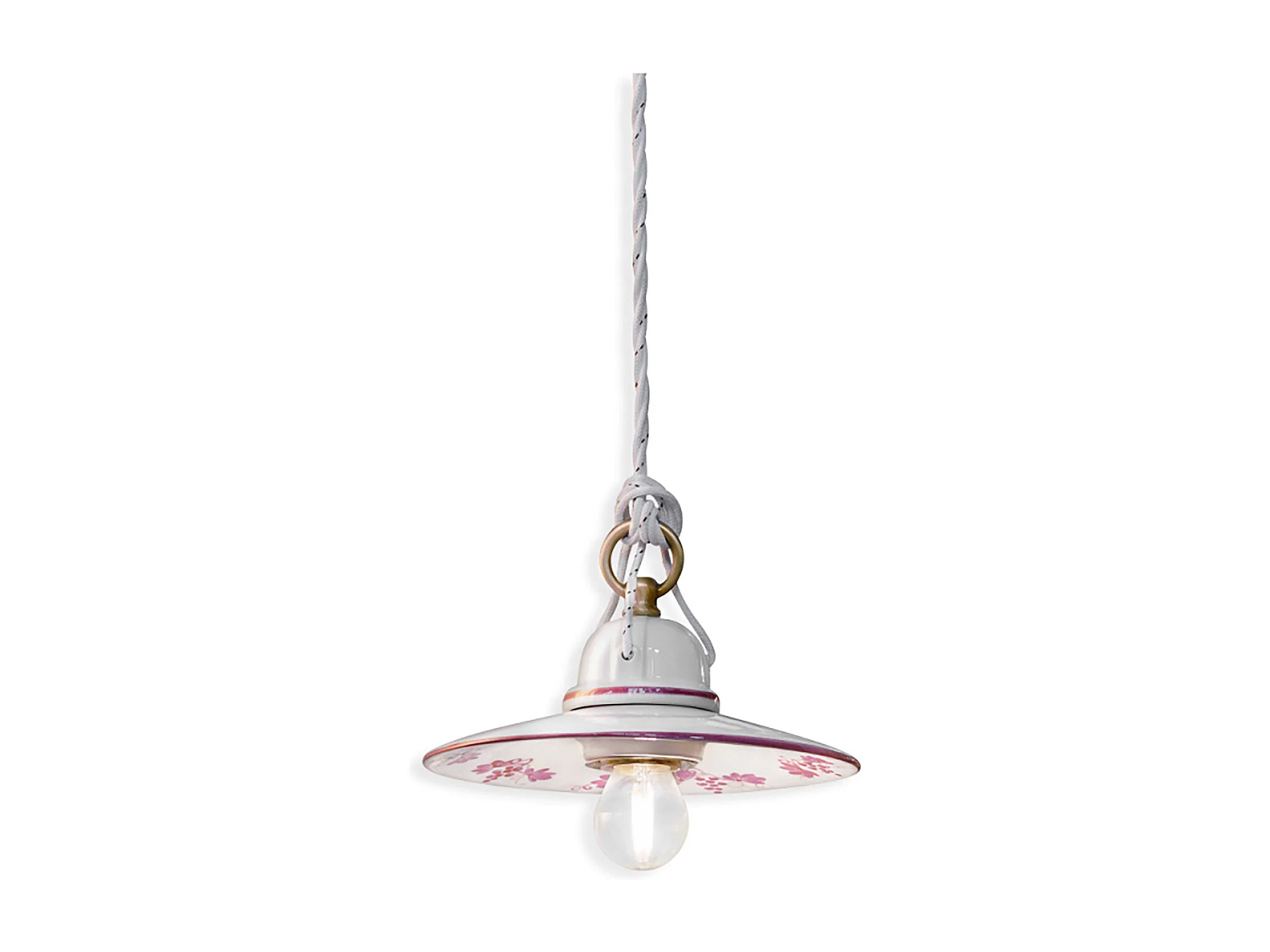 Sospensione Classico Asti Ferro E Ceramica Ottone Satinato Decorato 1 Luce E27