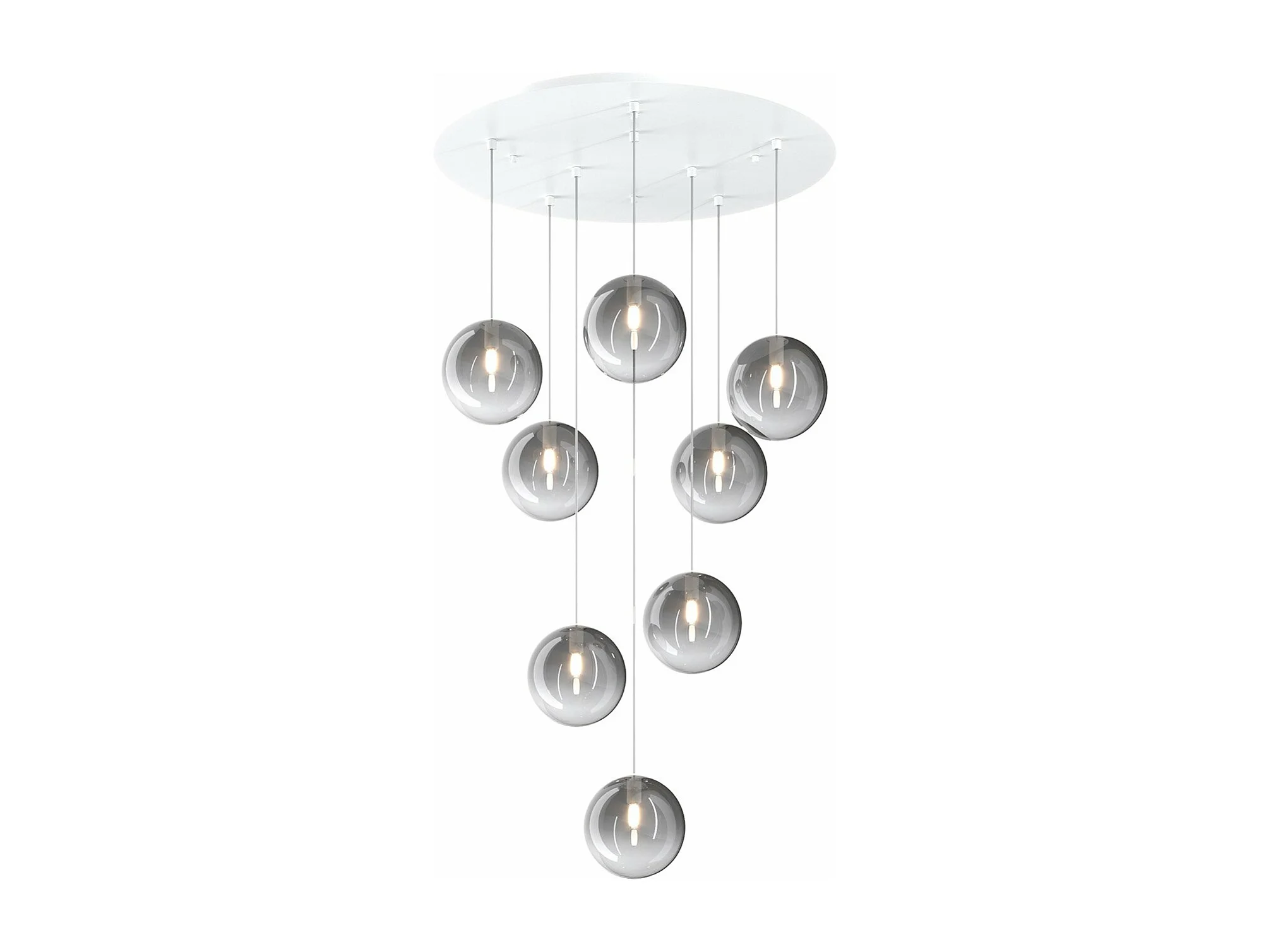 Sospensione Bianco 8 Luci Tonda Vetri Fume