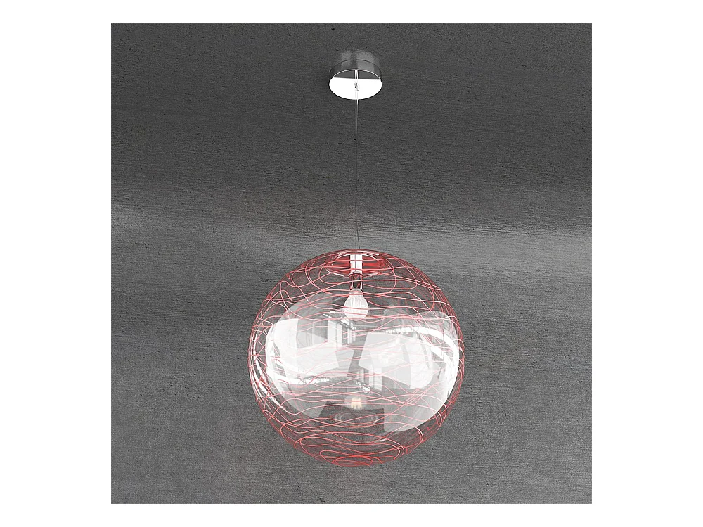 Sospensione Contemporanea Moon Metallo Cromo Vetro Rosso 1 Luce E27 D.40Cm