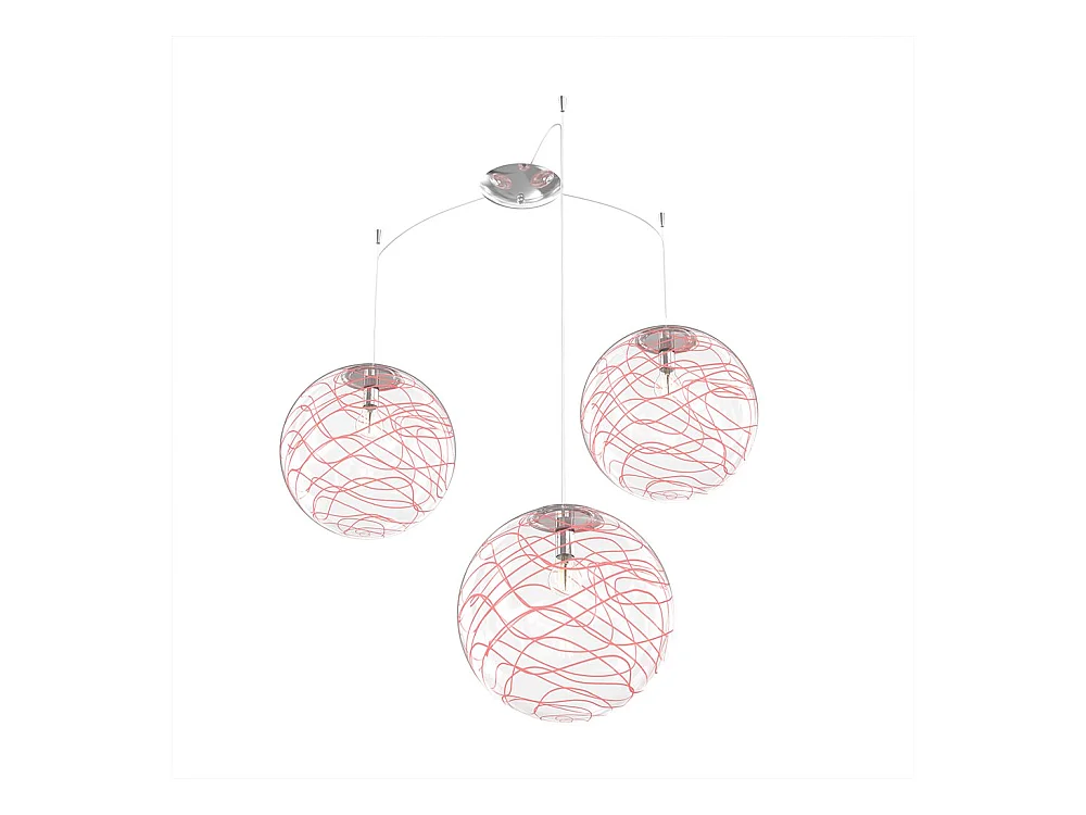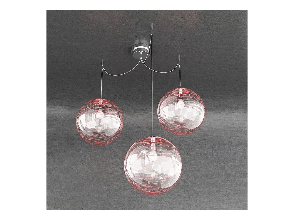 Sospensione Contemporanea Moon Metallo Cromo Vetro Rosso 3 Luci E27 D.30Cm