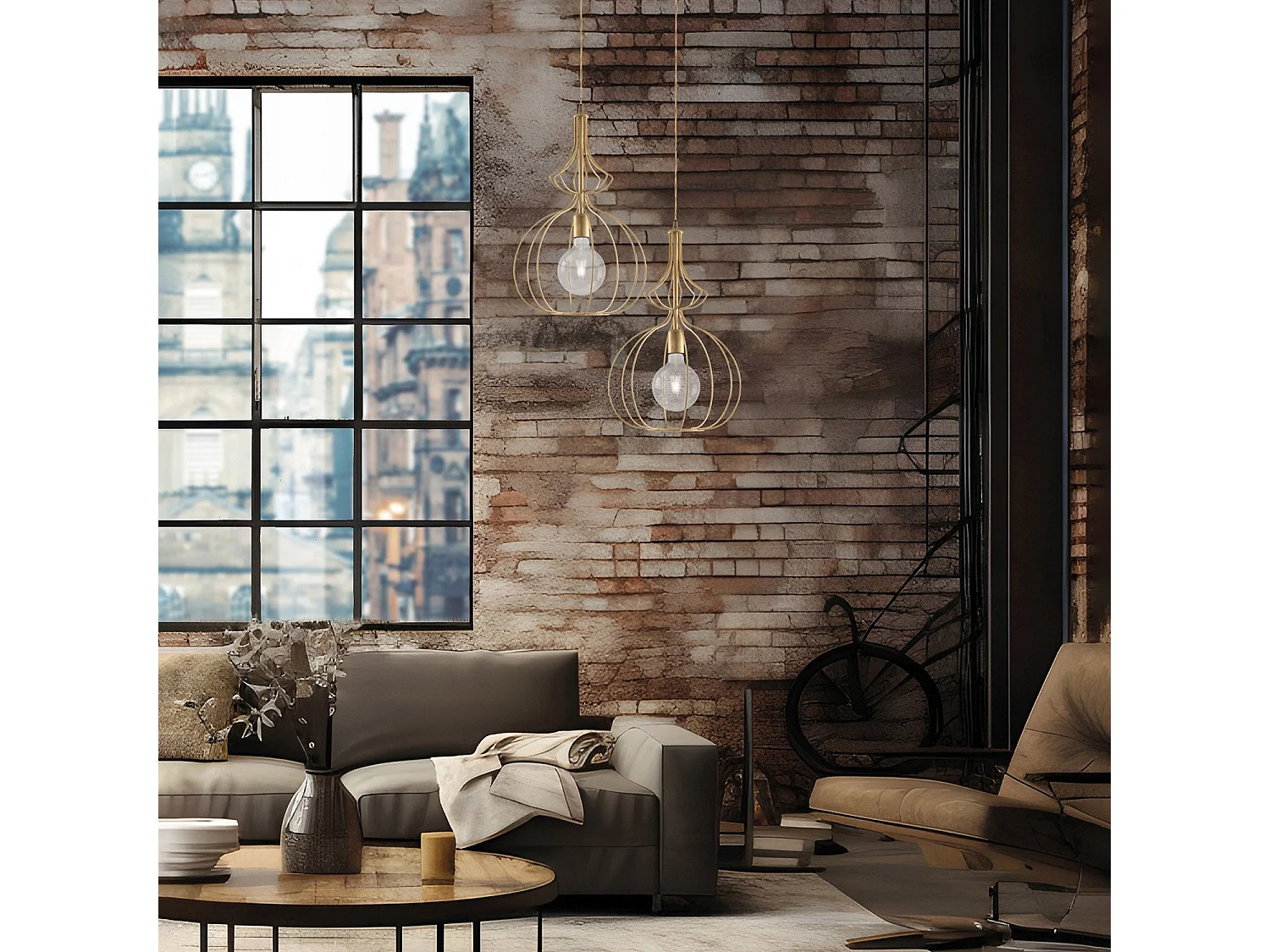 Sospensione Industrial 1 Luce Olimpia Gabbia Ferro Laccato Oro