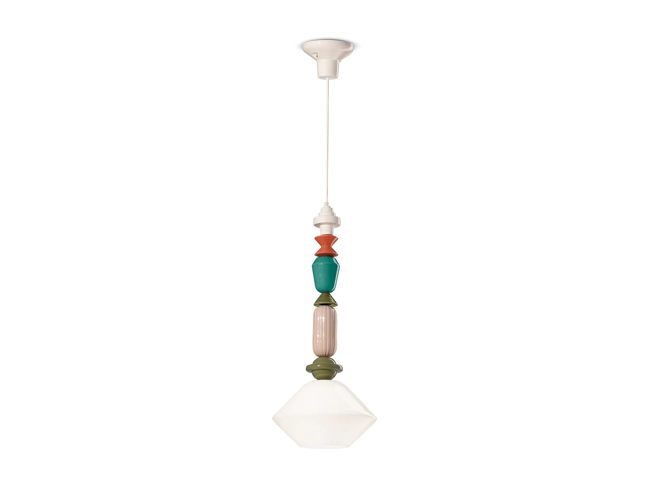 Sospensione Media Vintage Decò Lariat Ceramica Bianco Latte 1 Luce E27