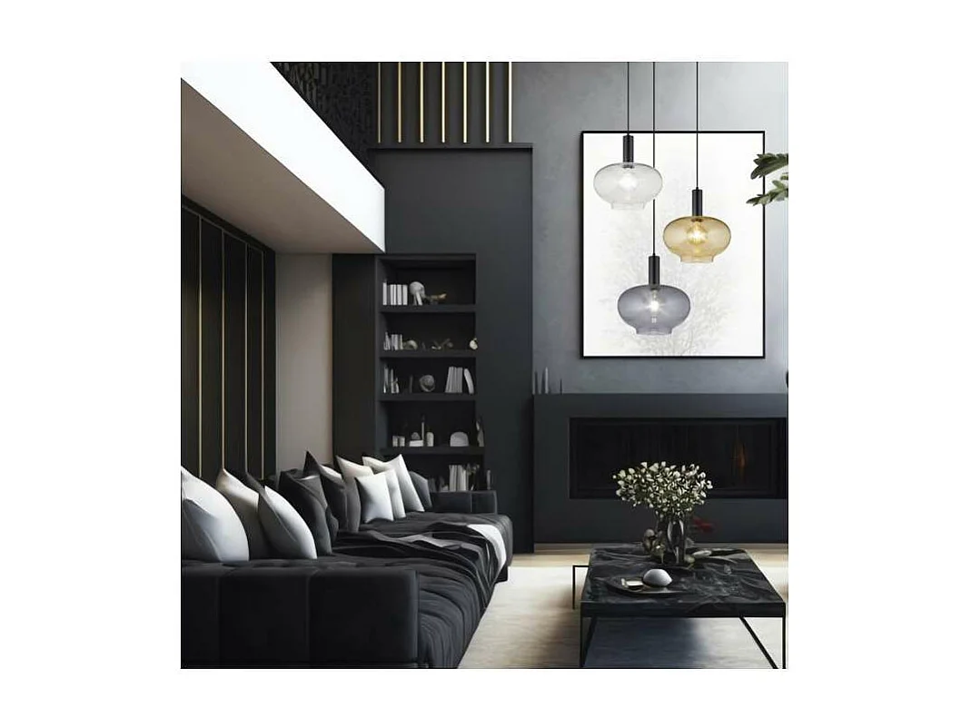 Colgante modelo Pataias acabado cristal negro/fumé, 43cm(alto) 30cm(ancho) 30cm(fondo)