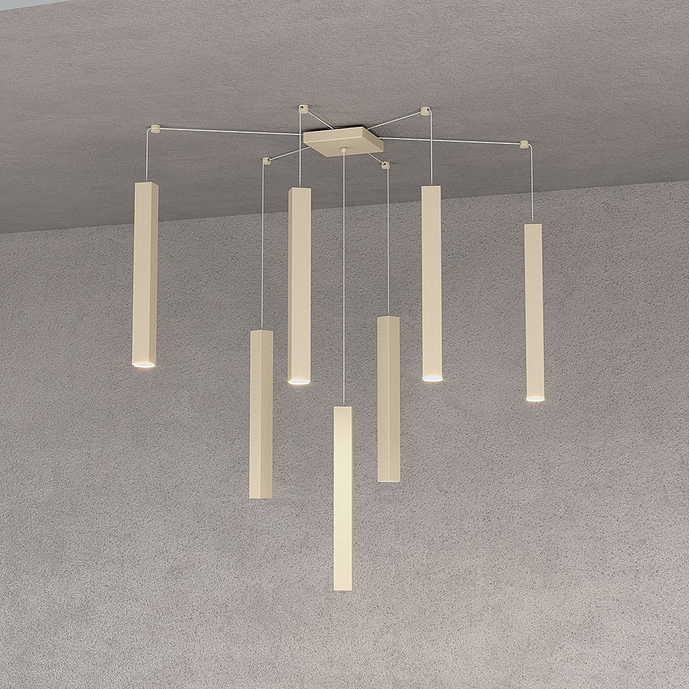 Square Tube Sospensione 7 Luci Sabbia Cavo Cm.250 Con Base