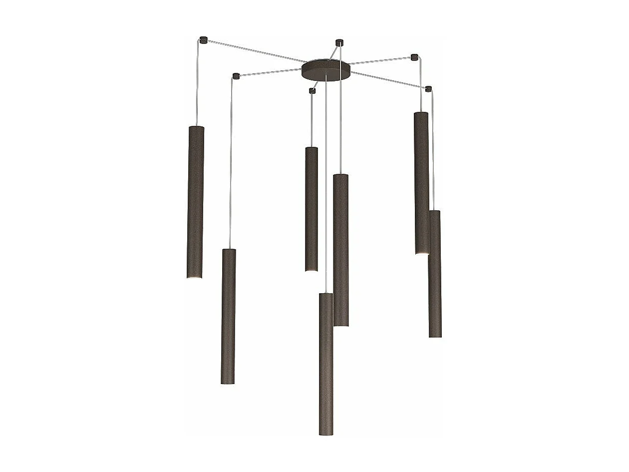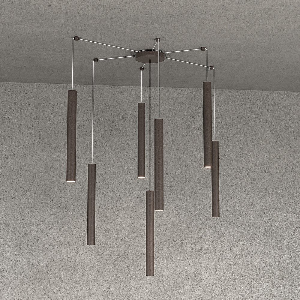 Round Tube Sospensione 7 Luci Marrone Cavo Cm.250 Con Base