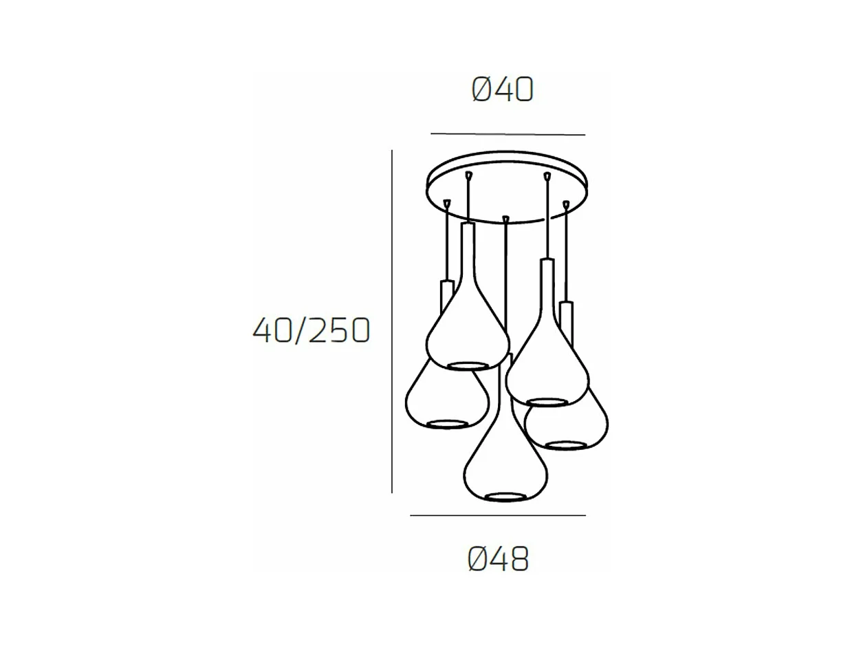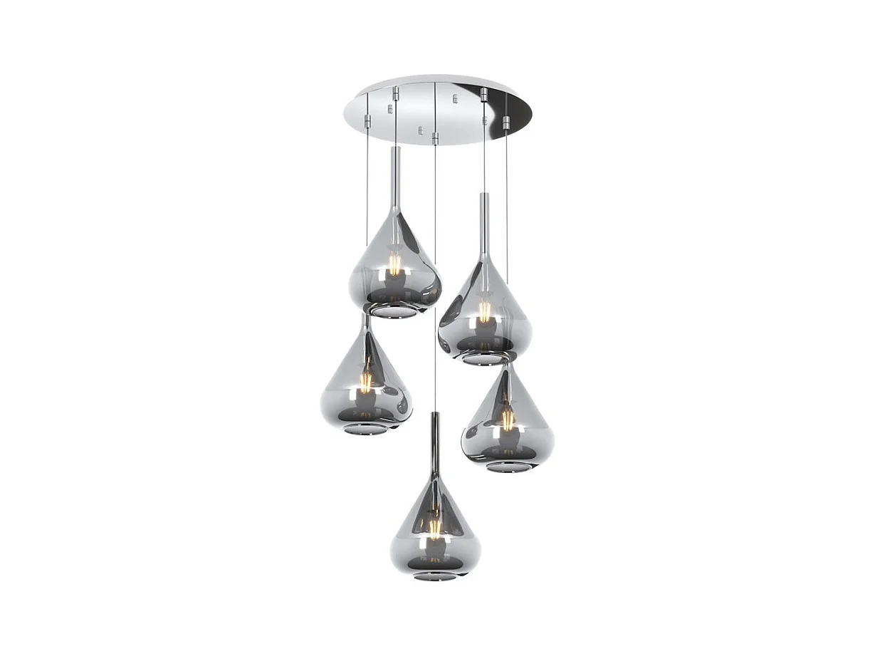 Sospensione Cromo 5 Luci Tonda Vetri Fume