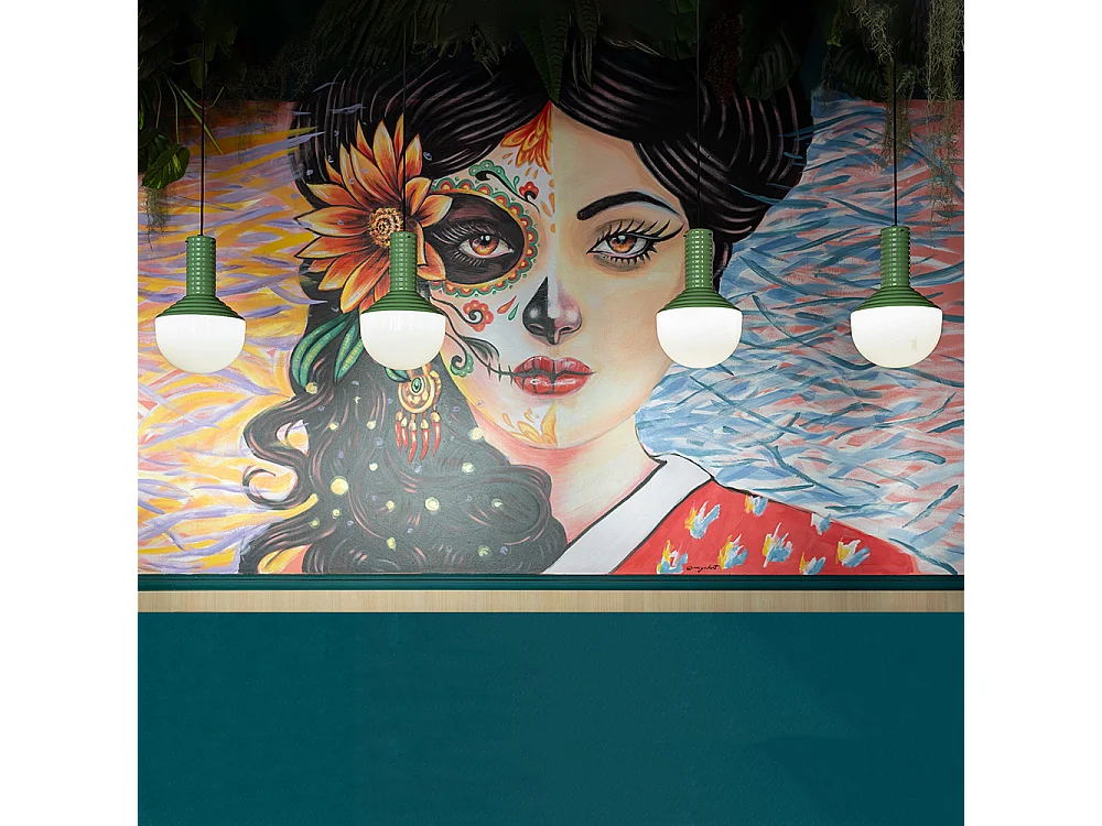 Sospensione Vintage Grande Decò Selaron Ceramica Verde Salvia 1 Luce E27