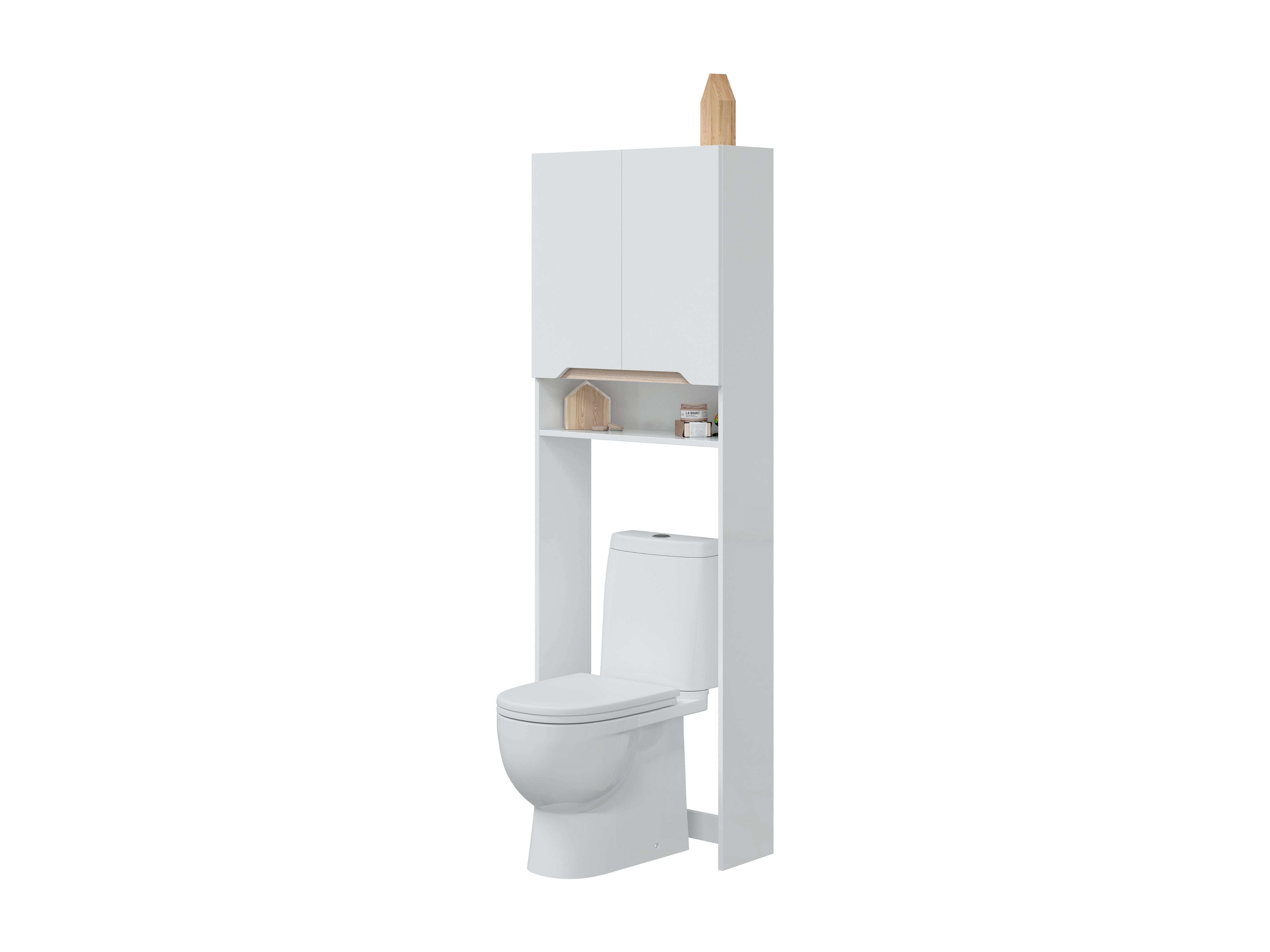 Columna Baño Curvas 2 Puertas 3 Estantes Hueco Inodoro Bl. Brillo Roble