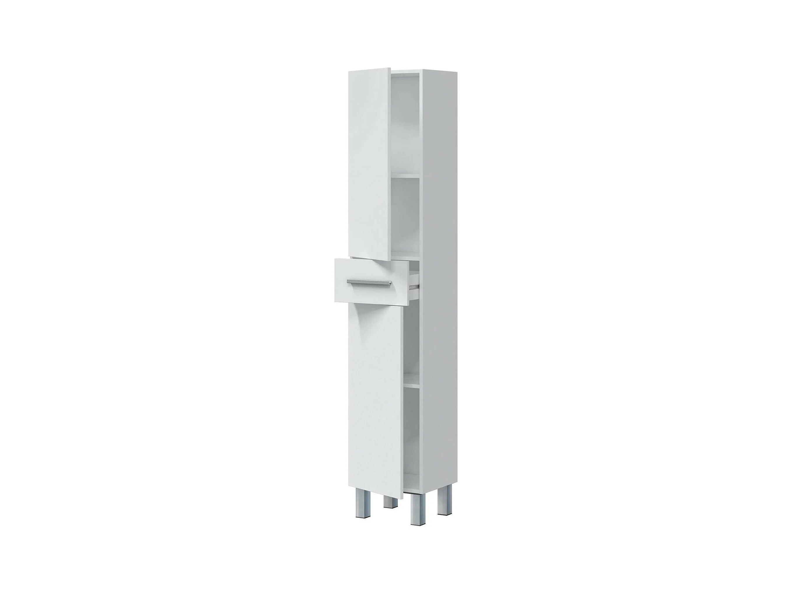 Columna de baño Dokerek, Mueble alto para baño con 2 puertas y 1 cajón, Mueble alto, 35x31h182 cm, Blanco brillo