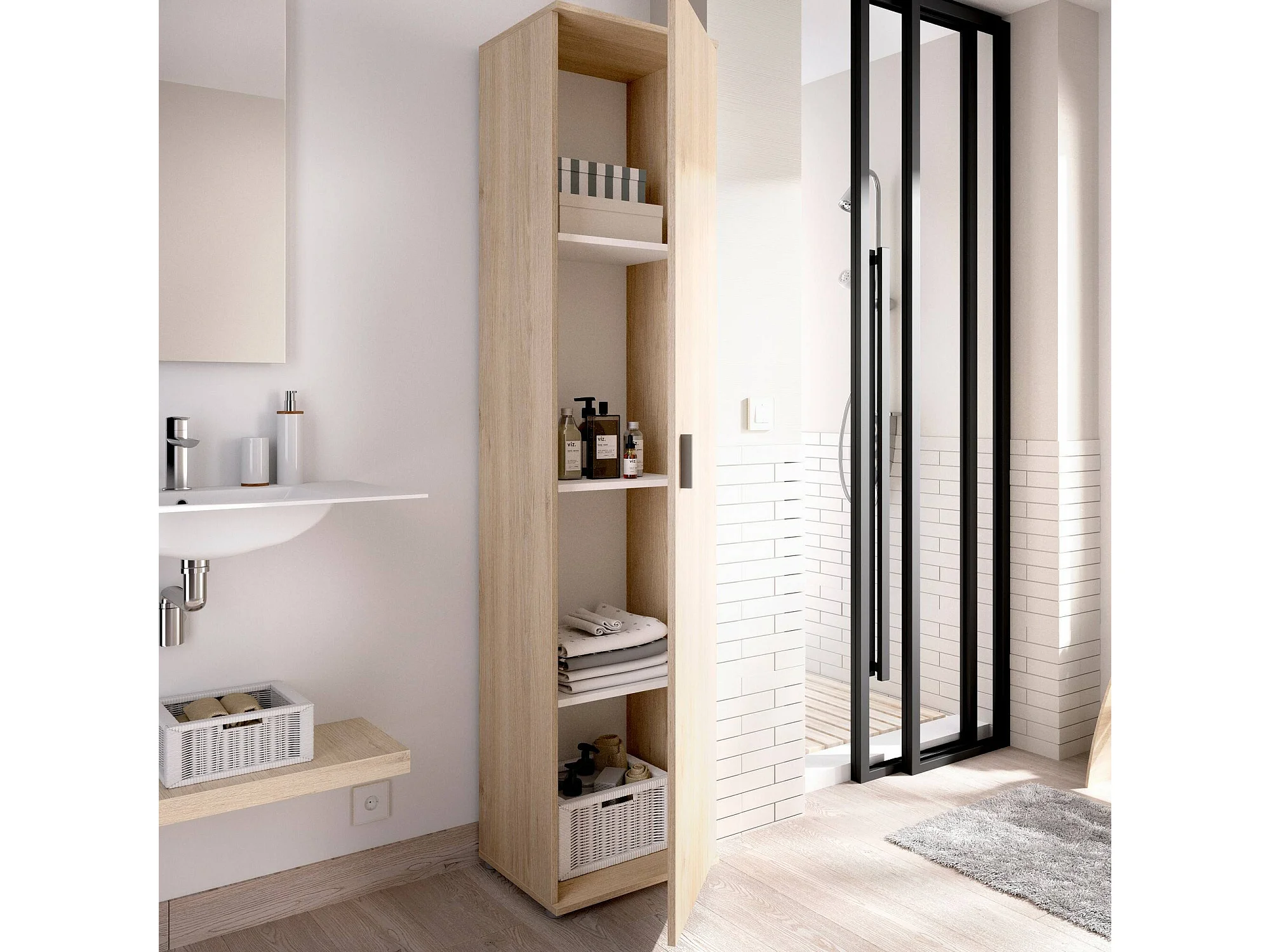 Armario multiusos Lagalb, Unidad de almacenamiento multifuncional, Armario de 1 puerta, 39x35h190 cm, Roble