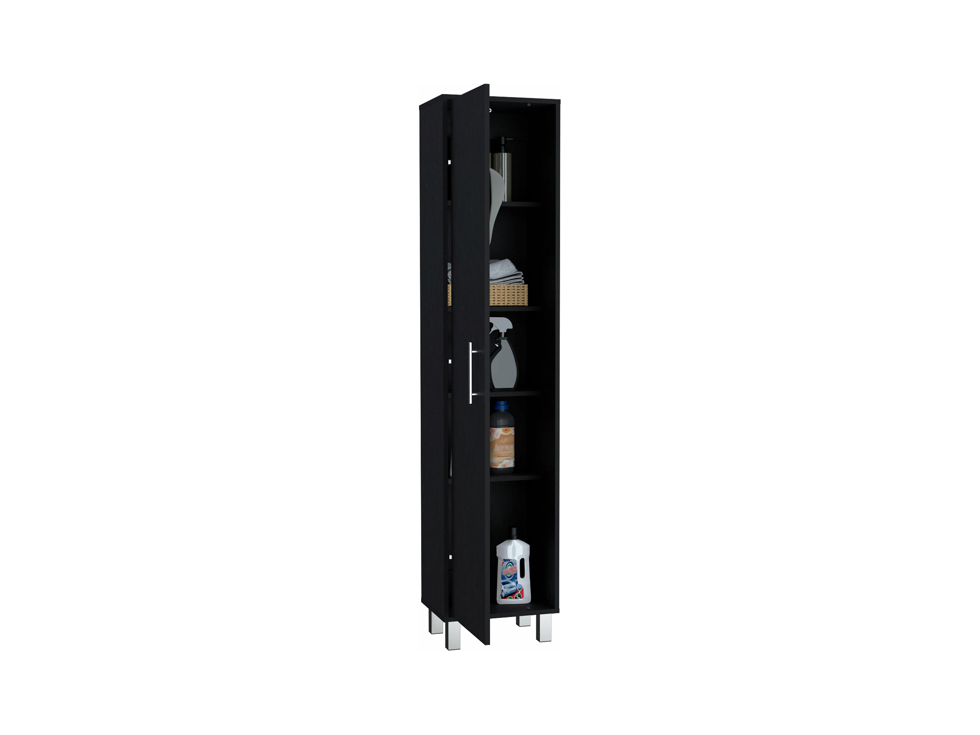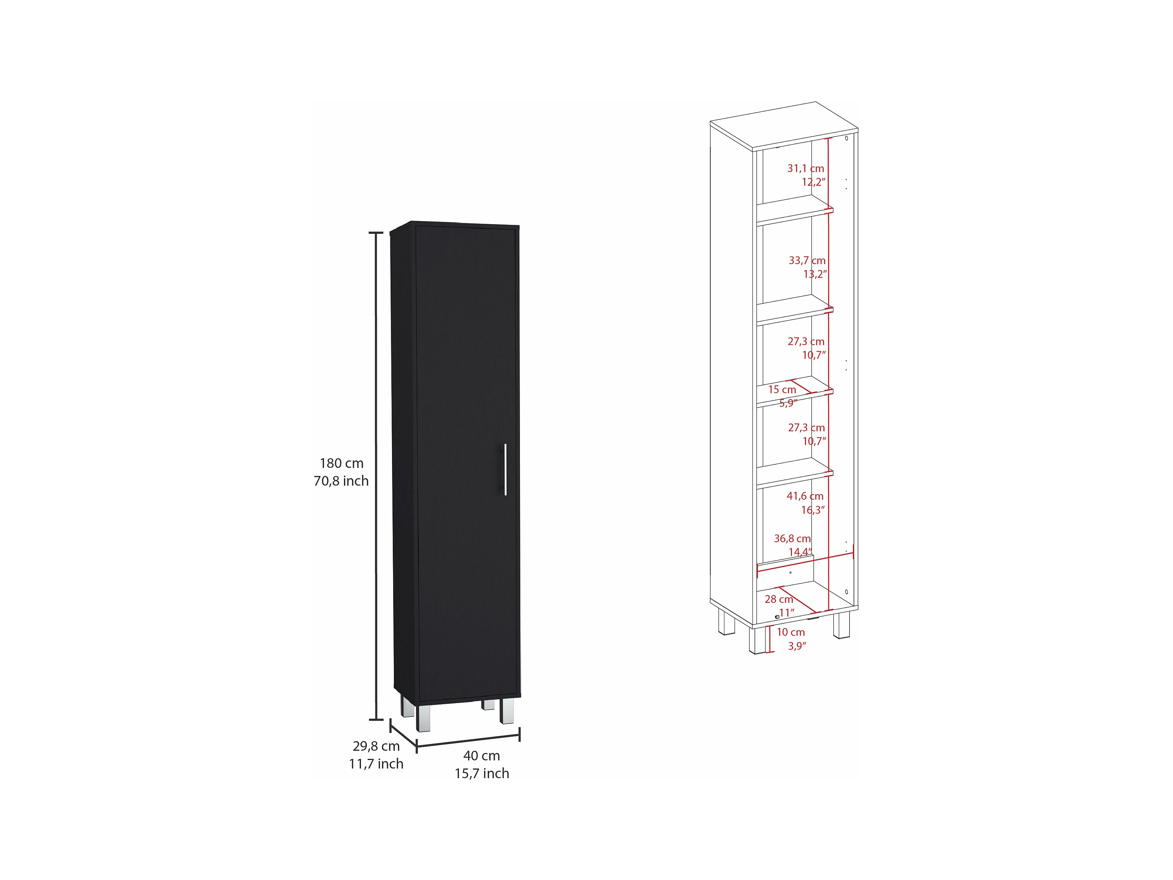 Columna de baño Laska con 5 estantes y 1 puerta , negro , 180 cm X 40 cm X 29.8 cm