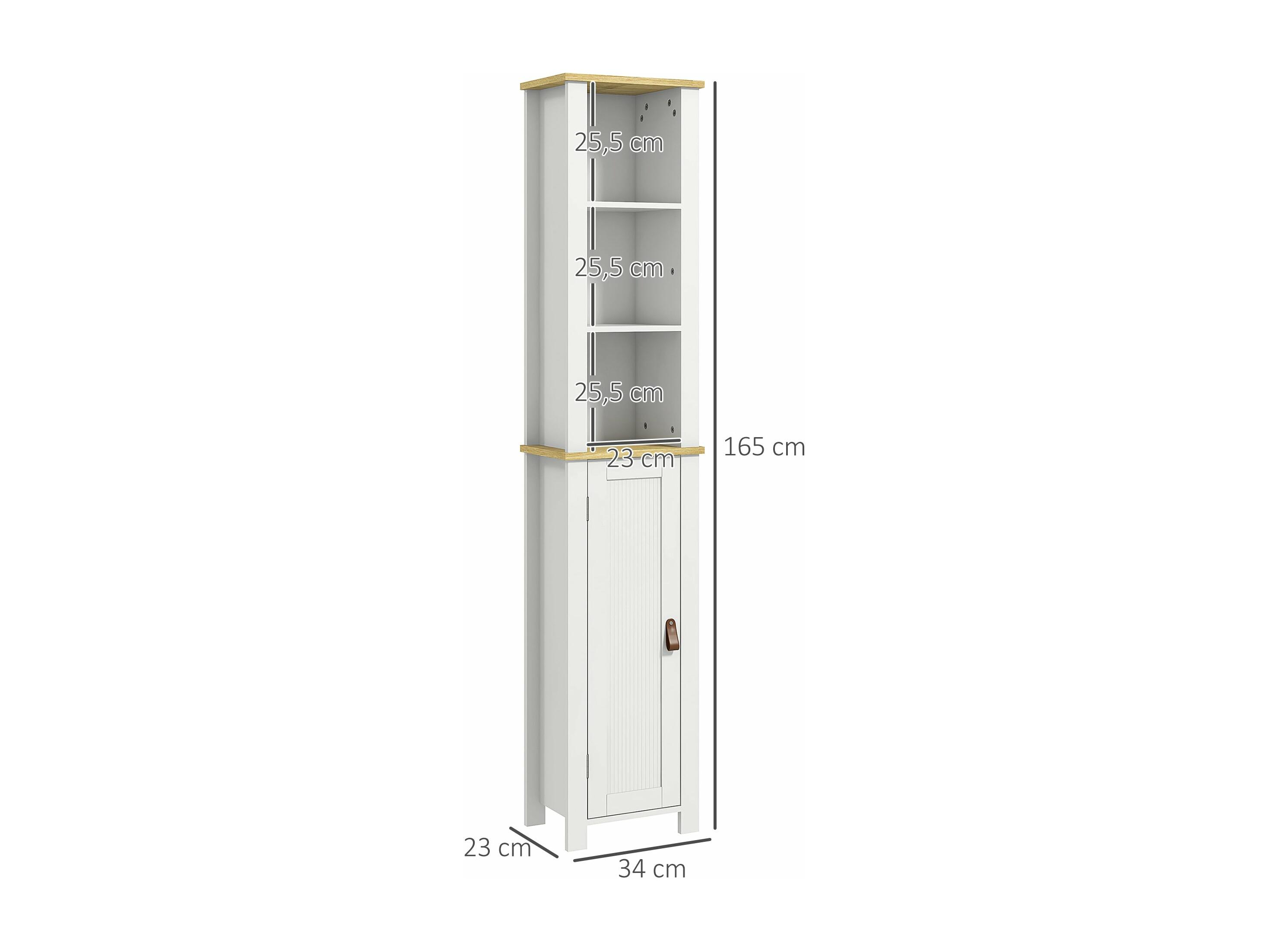 Si necesitas más espacio de almacenamiento en tu baño, la columna Monte de Kleankin es la solución ideal. Pensada para aprovechar esos rincones estrechos que suelen quedar vacíos, permite mantener el baño ordenado y funcional sin renunciar al estilo. Esta columna combina 3 estantes abiertos con un armario de 3 niveles, ofreciendo espacio suficiente para organizar toallas, papel higiénico, productos de higiene diaria o artículos de limpieza. La estantería inferior del armario es ajustable en 3 niveles, lo que proporciona flexibilidad para adaptarse a diferentes tamaños de objetos y maximizar el espacio disponible. El diseño del mueble incorpora detalles que marcan la diferencia.