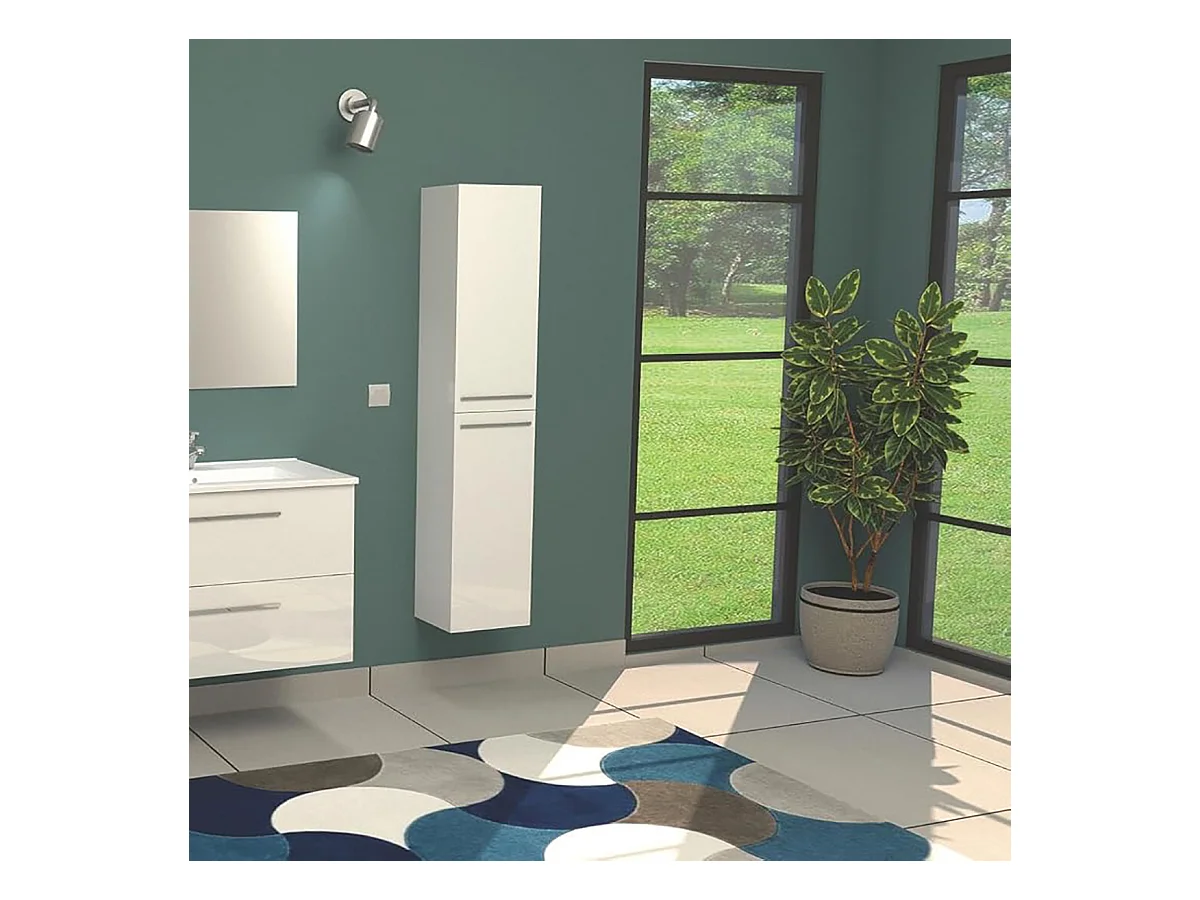 Columna de Baño o Aseo Suspendida de 2 Puertas, Armario Auxiliar con Acabado en Color Blanco Brillo - Dim: 30 cm (Ancho) x 150 cm (Alto) x 25 cm (Fondo)
