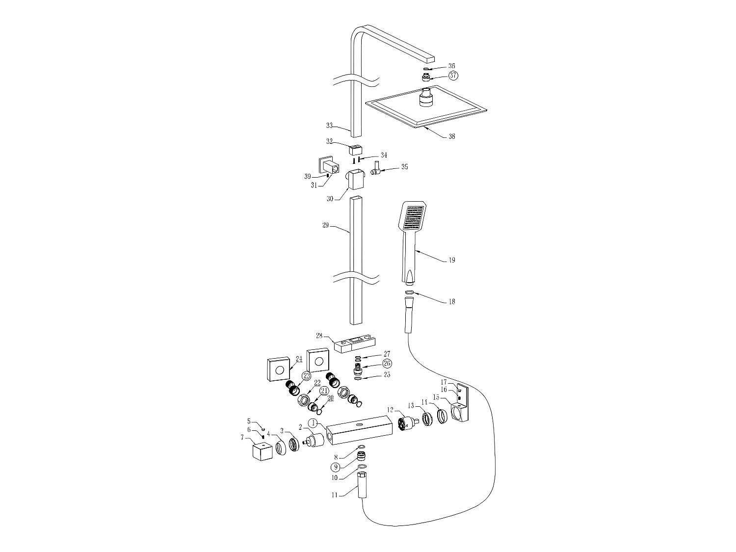 Columna de ducha monomando MANZO 20 cm x 20 cm Cromado