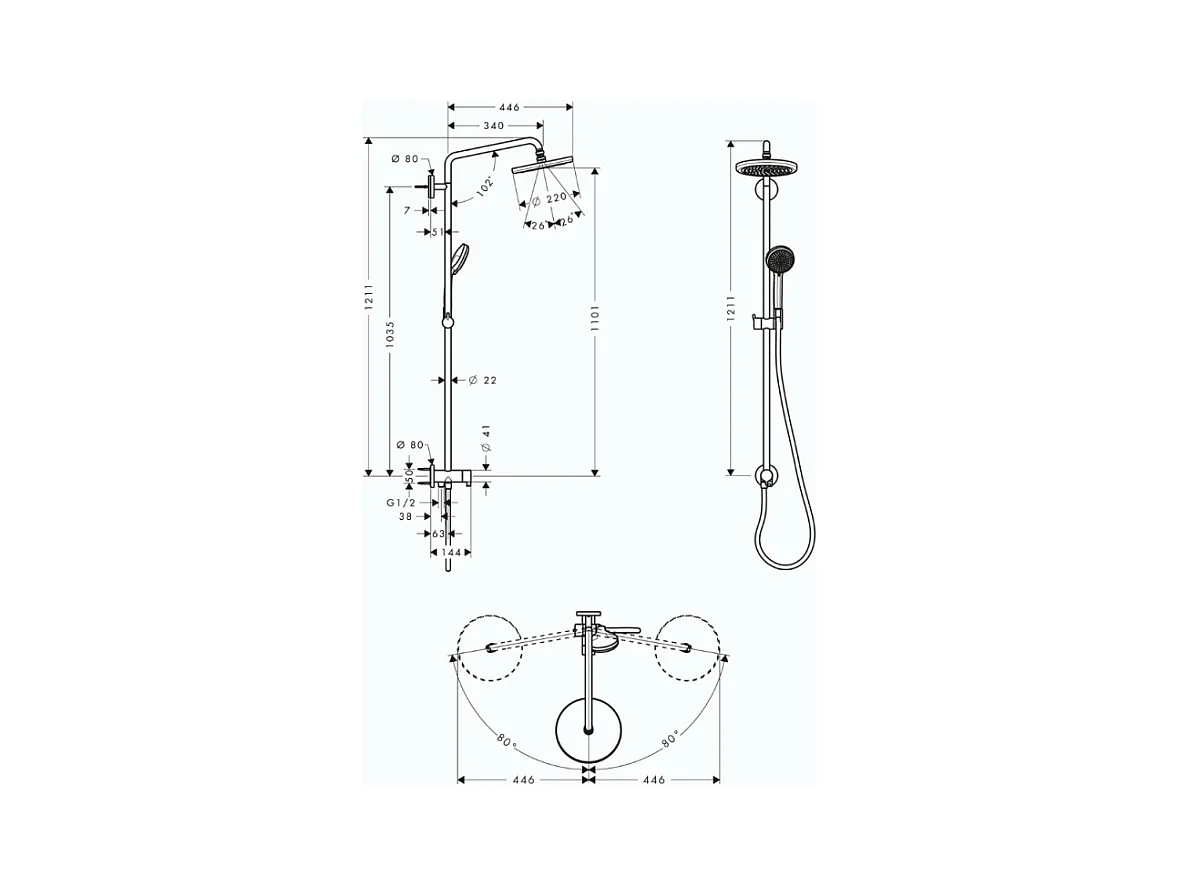 Columna de ducha o ducha de baño sin grifería HANSGROHE Croma 220 cromo