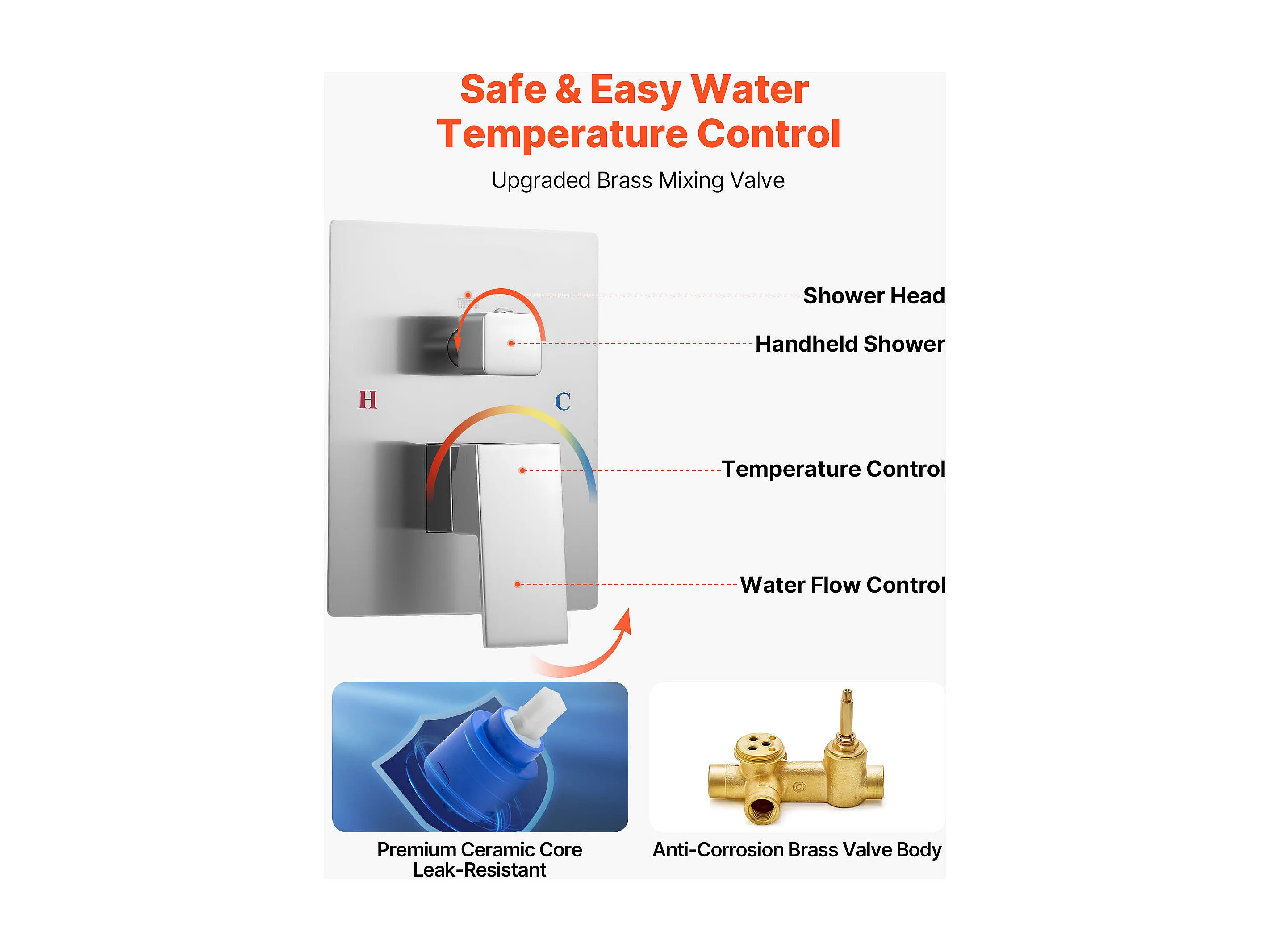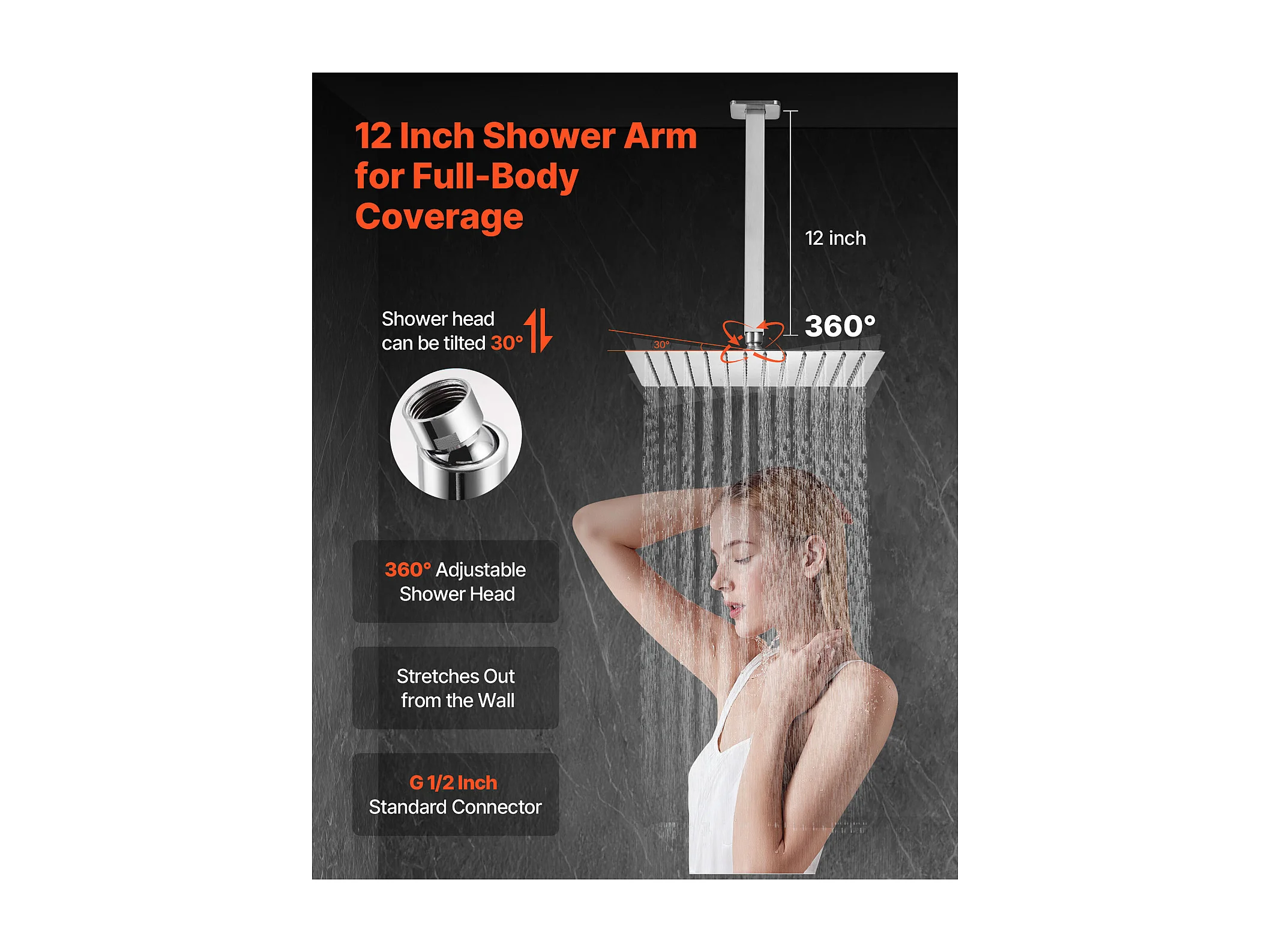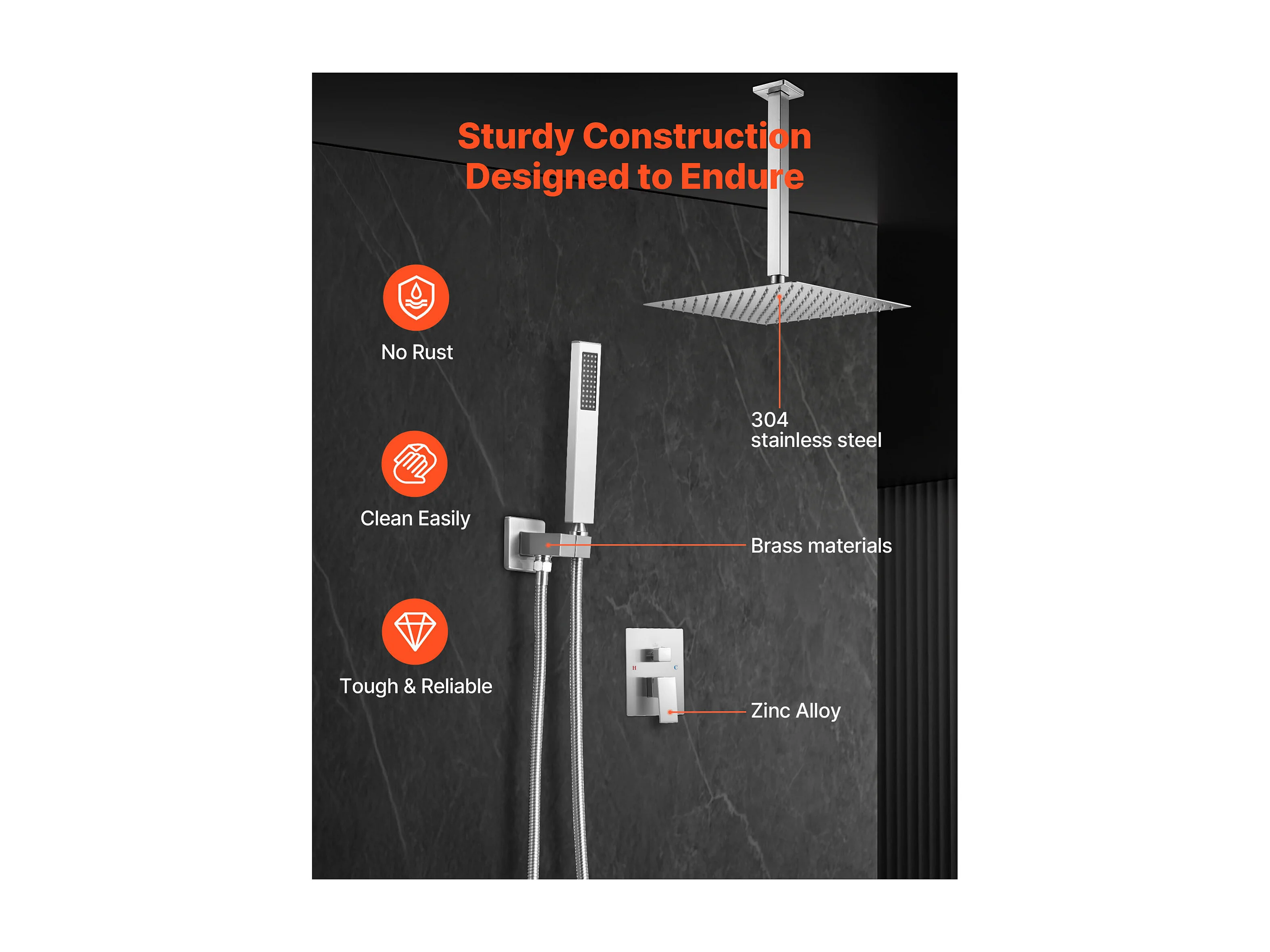 Columna de Ducha SucceBuy Kit de Ducha, Sistema de Ducha con Rociador Cuadrado de 305 mm, Teleducha, Montaje en Techo, Acabado en Níquel Cepillado