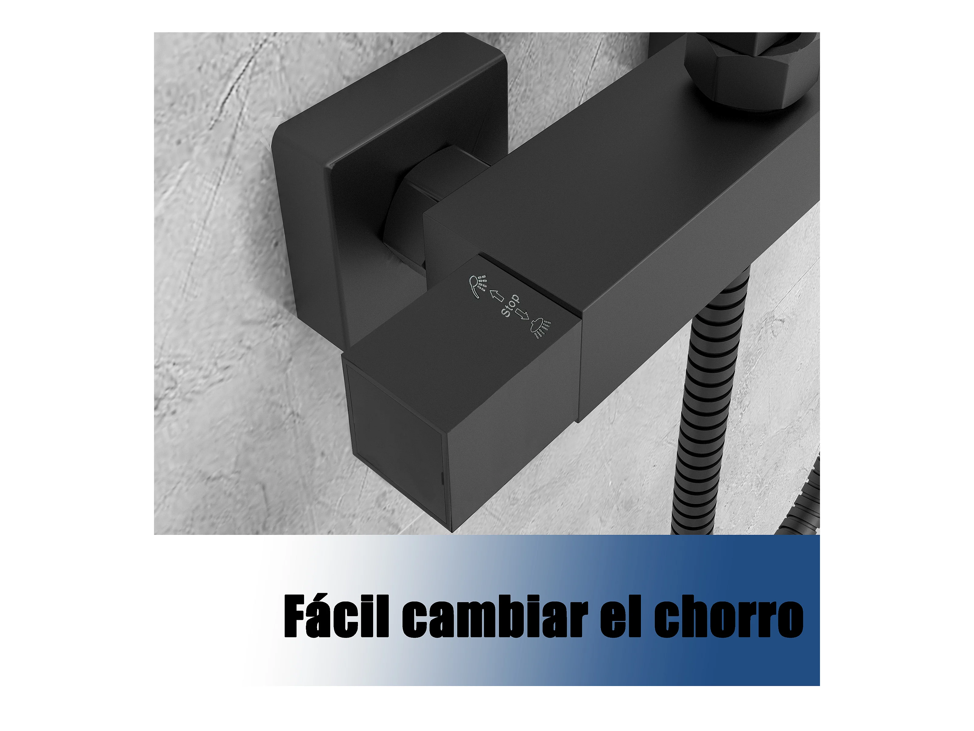 Cabezal de ducha de mano NETTLIFE de color negro que ahorra agua con 3 chorros cuadrados