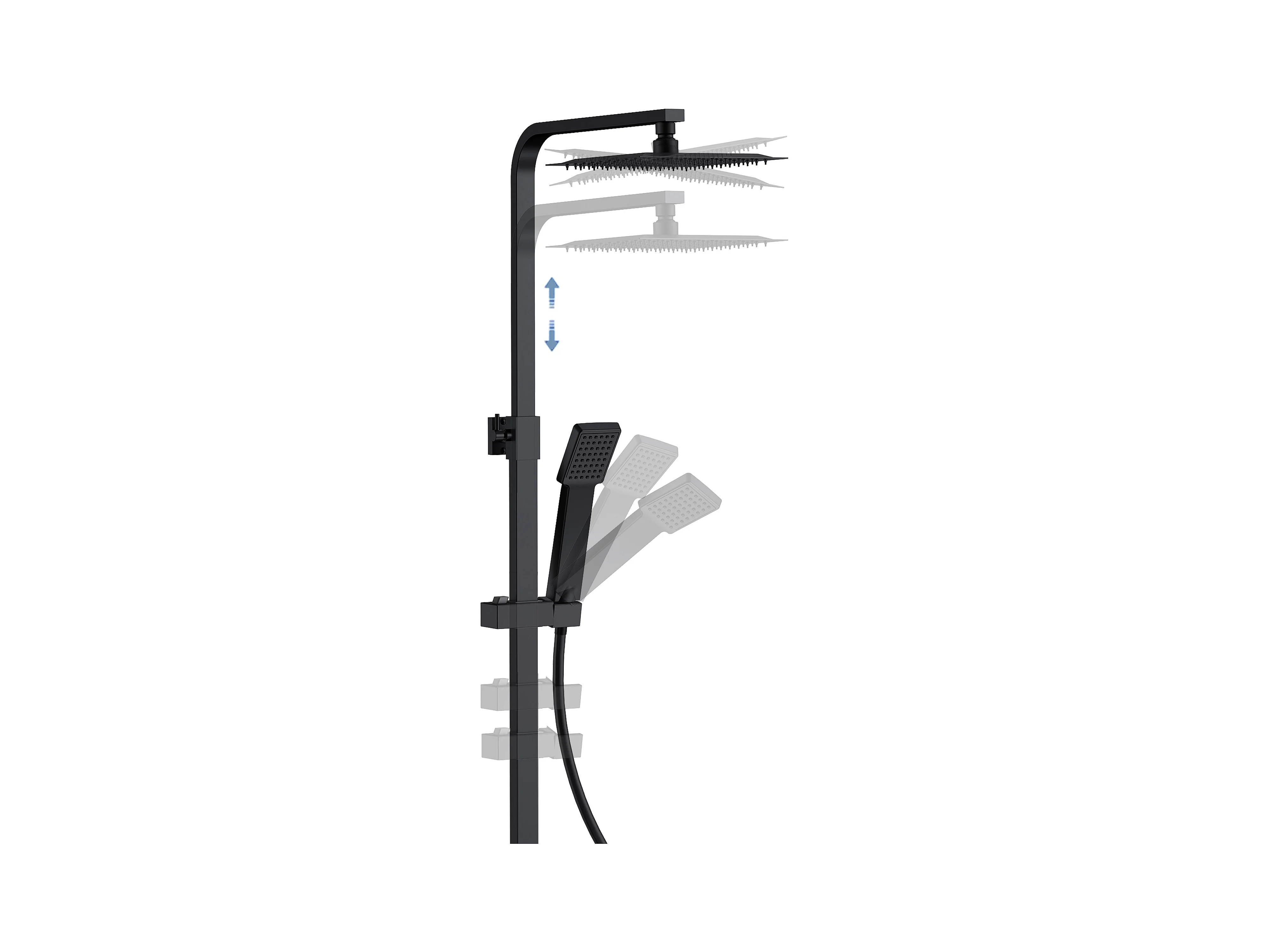 Columna de Ducha Termostática AICA negro mate alcachofa cuadrada y ducha superior grande