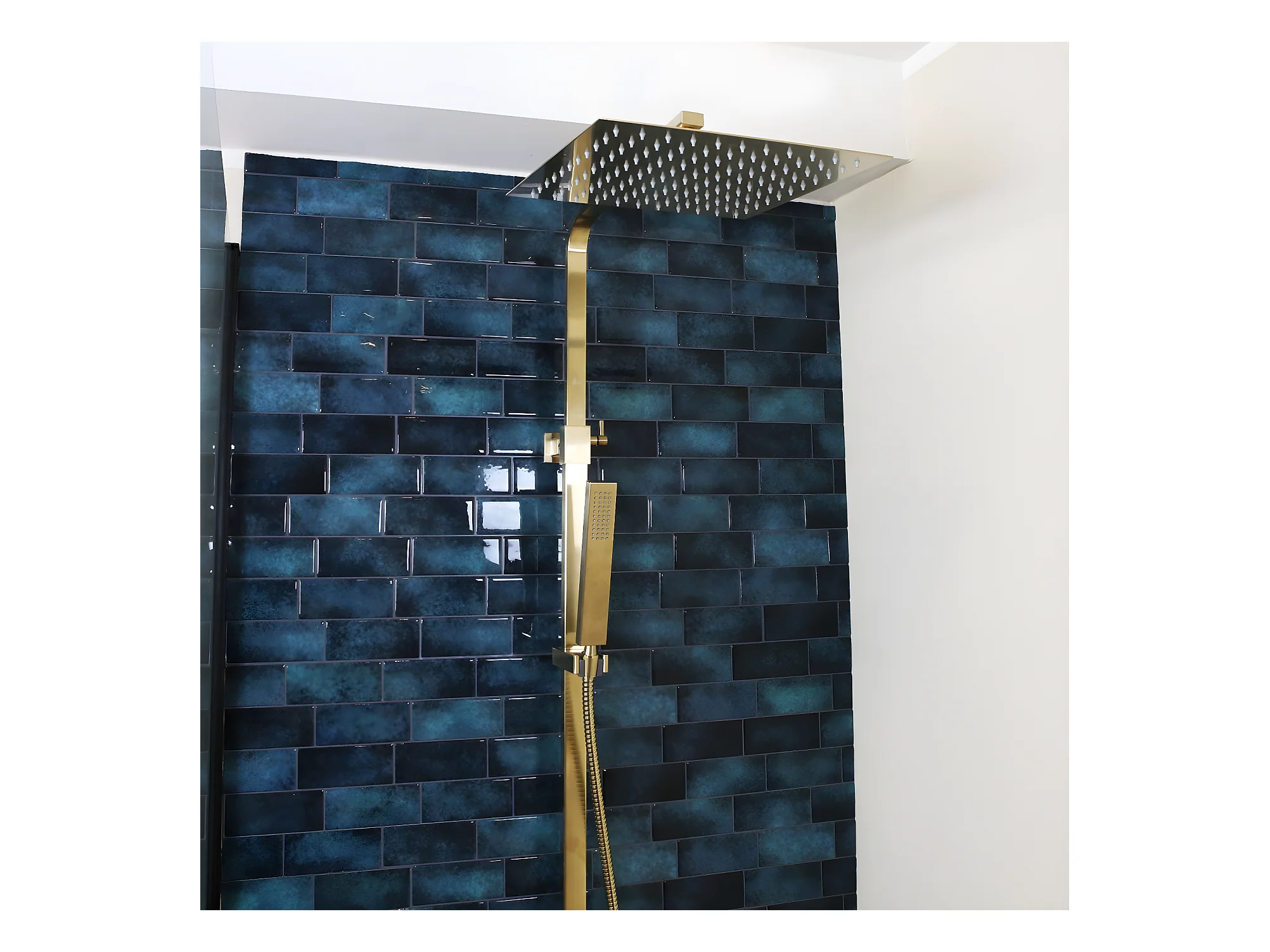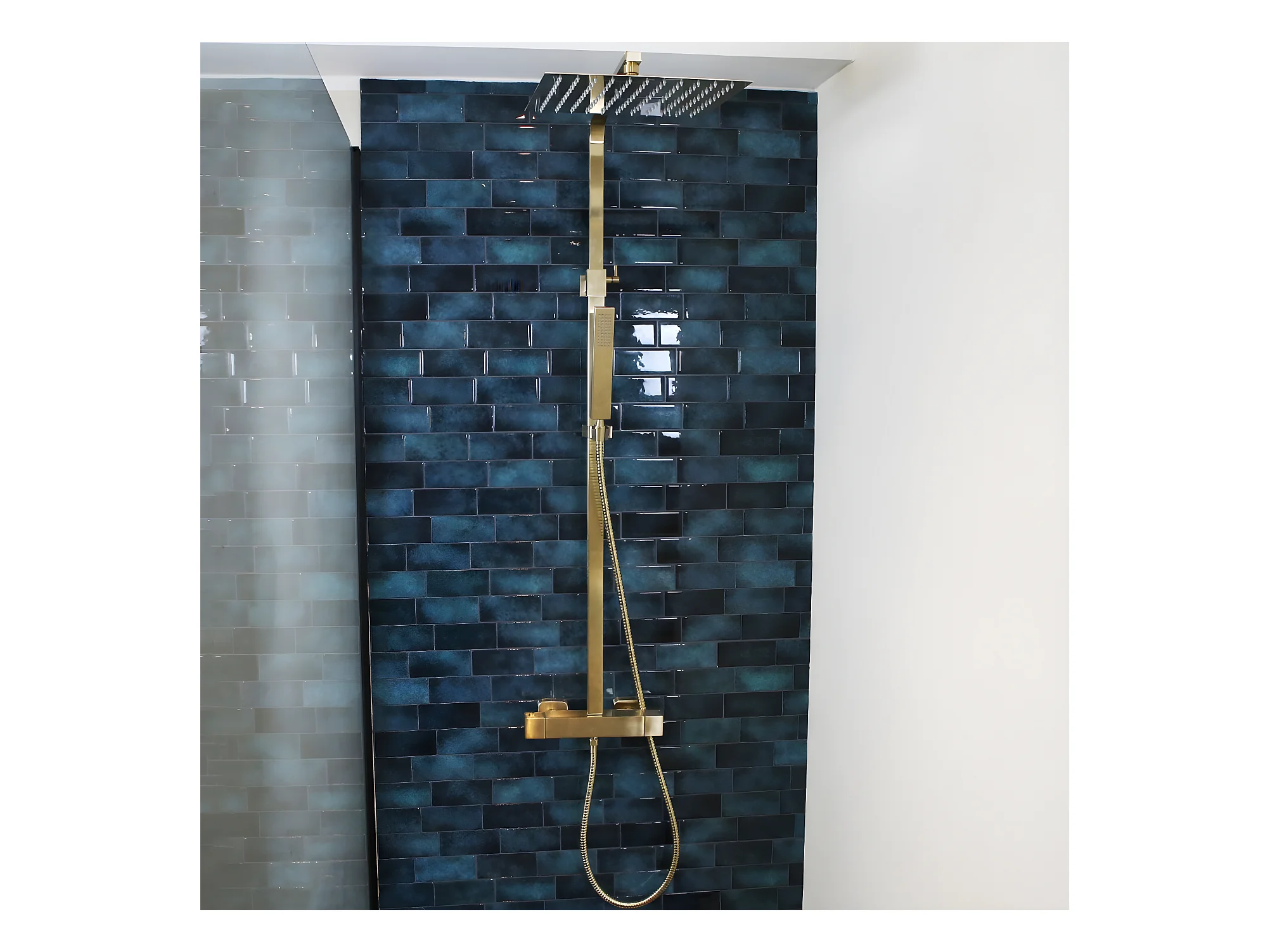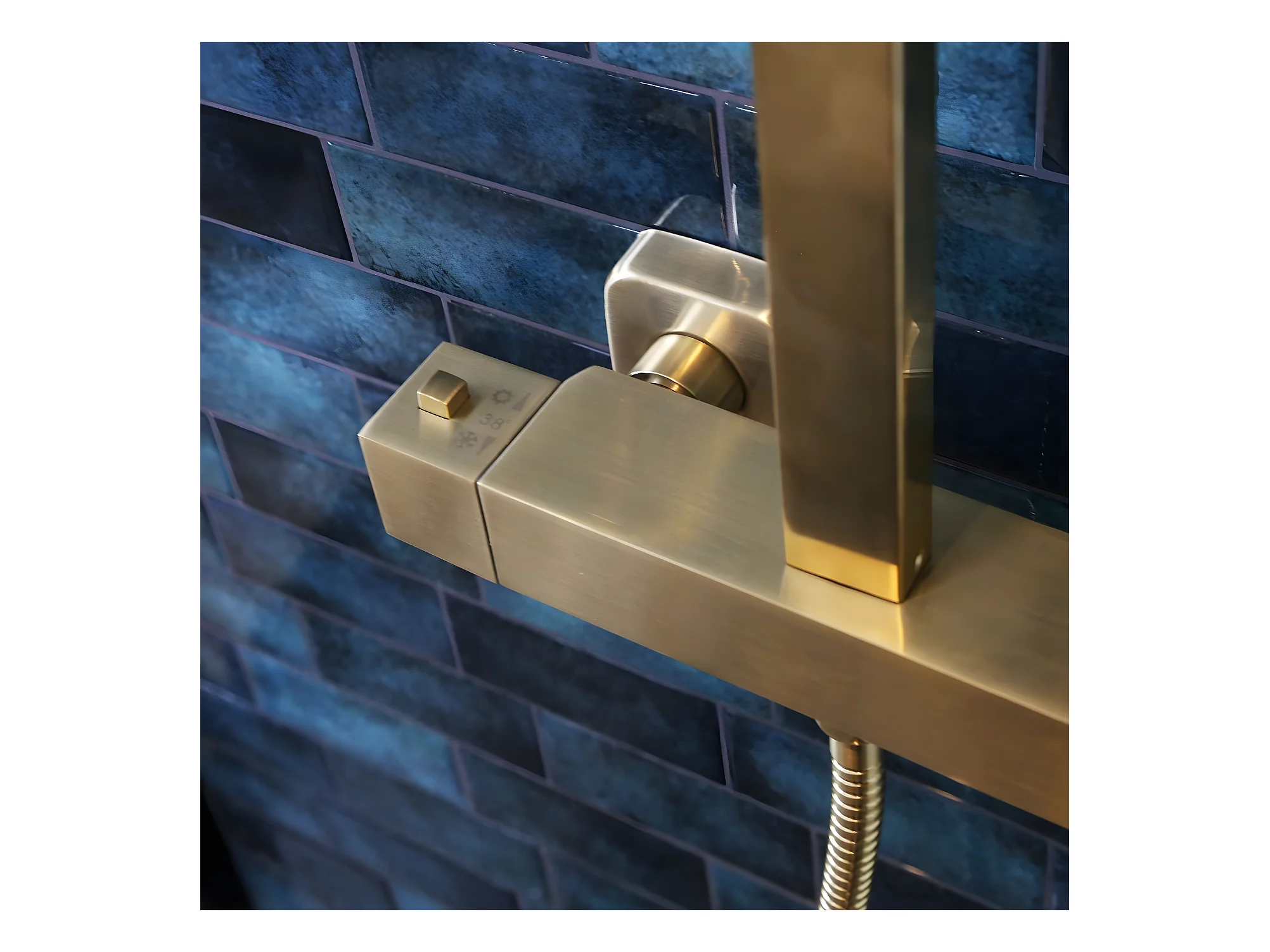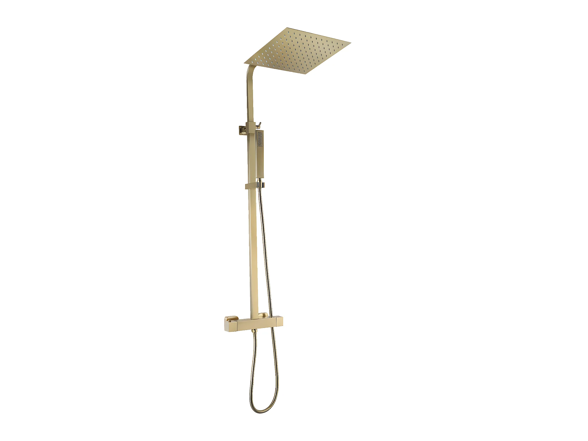 Columna de ducha termostática cuadrada Square II en oro cepillado Essebagno