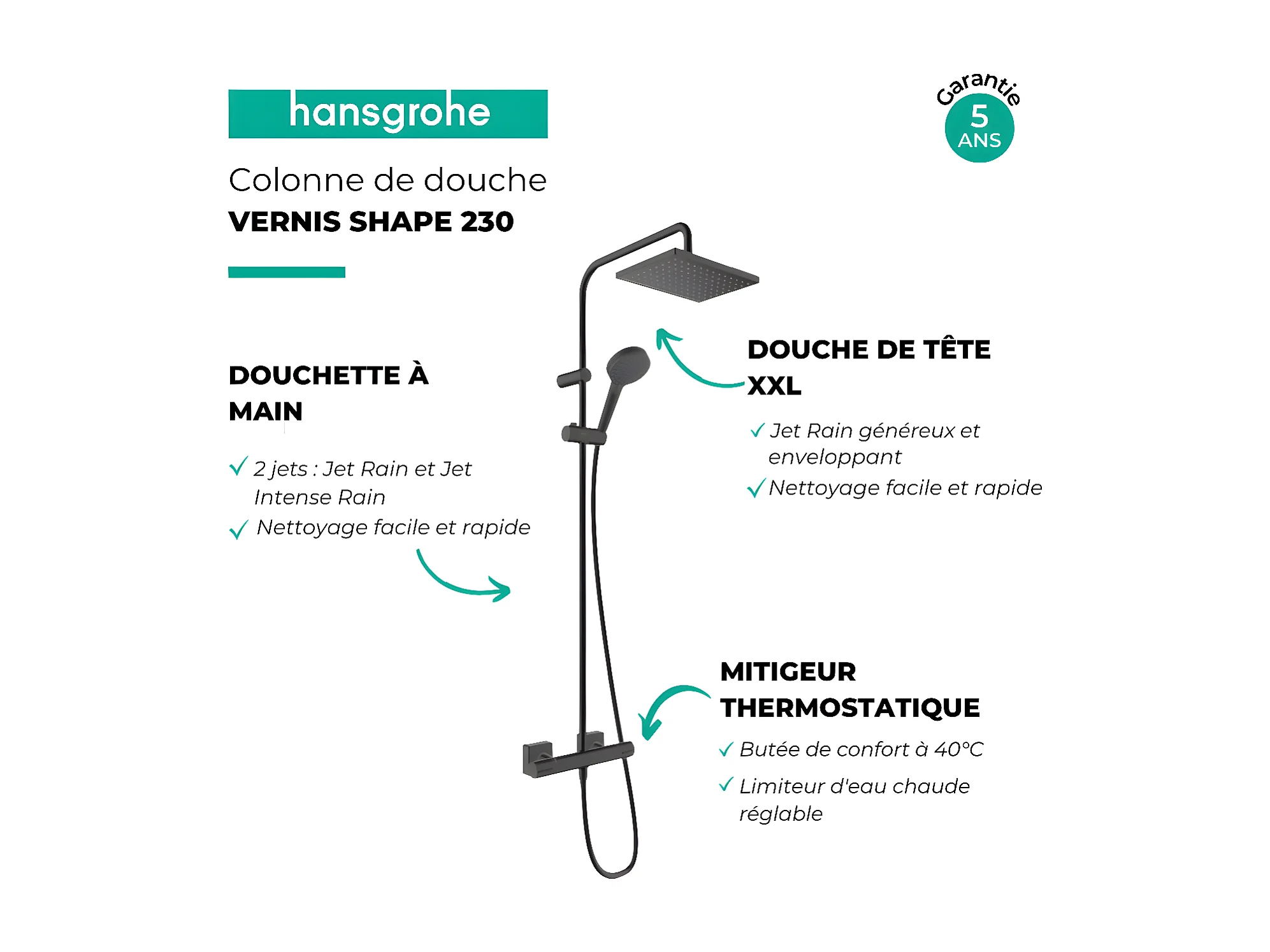 HANSGROHE Vernis Shape 230 columna de ducha termostática negra mate