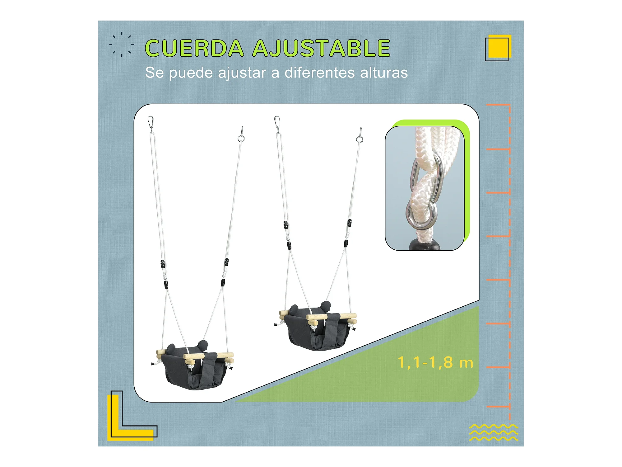 Columpio para bebé gris oscuro 40x40x180 cm AIYAPLAY