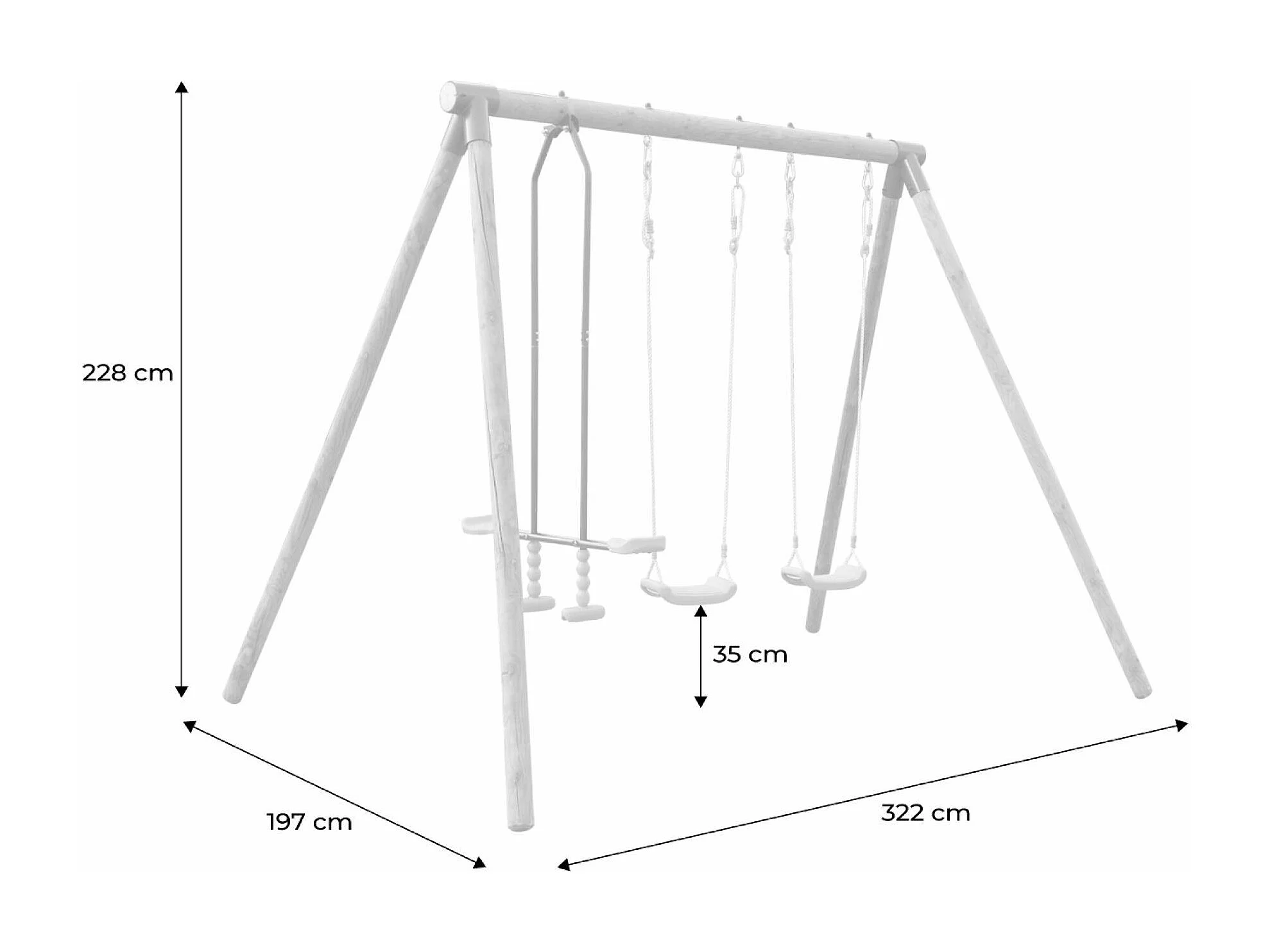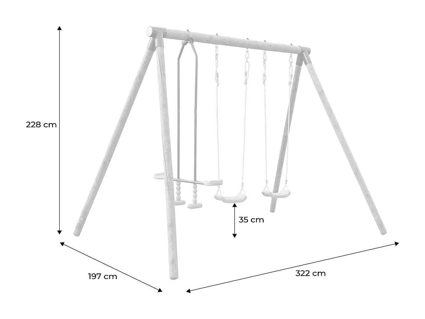 Columpio de madera "Balanga" - Con 1 Tobogán - 1 Columpio - 1 Cara a cara - 1 Capazo.