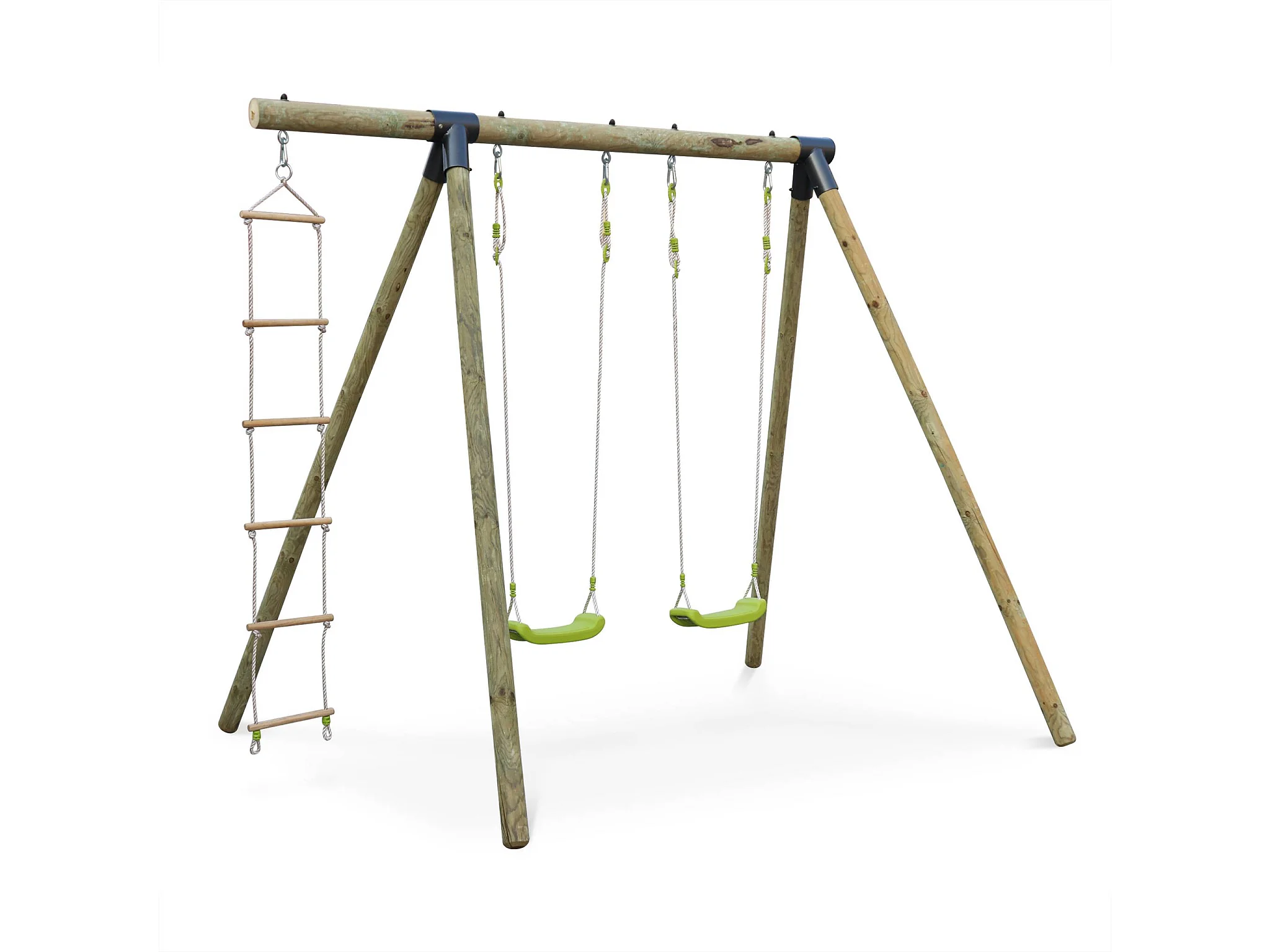 Columpio para niños, con tobogán y escalada, de madera maciza, carga máxima 50 kg, 239x240x169 cm