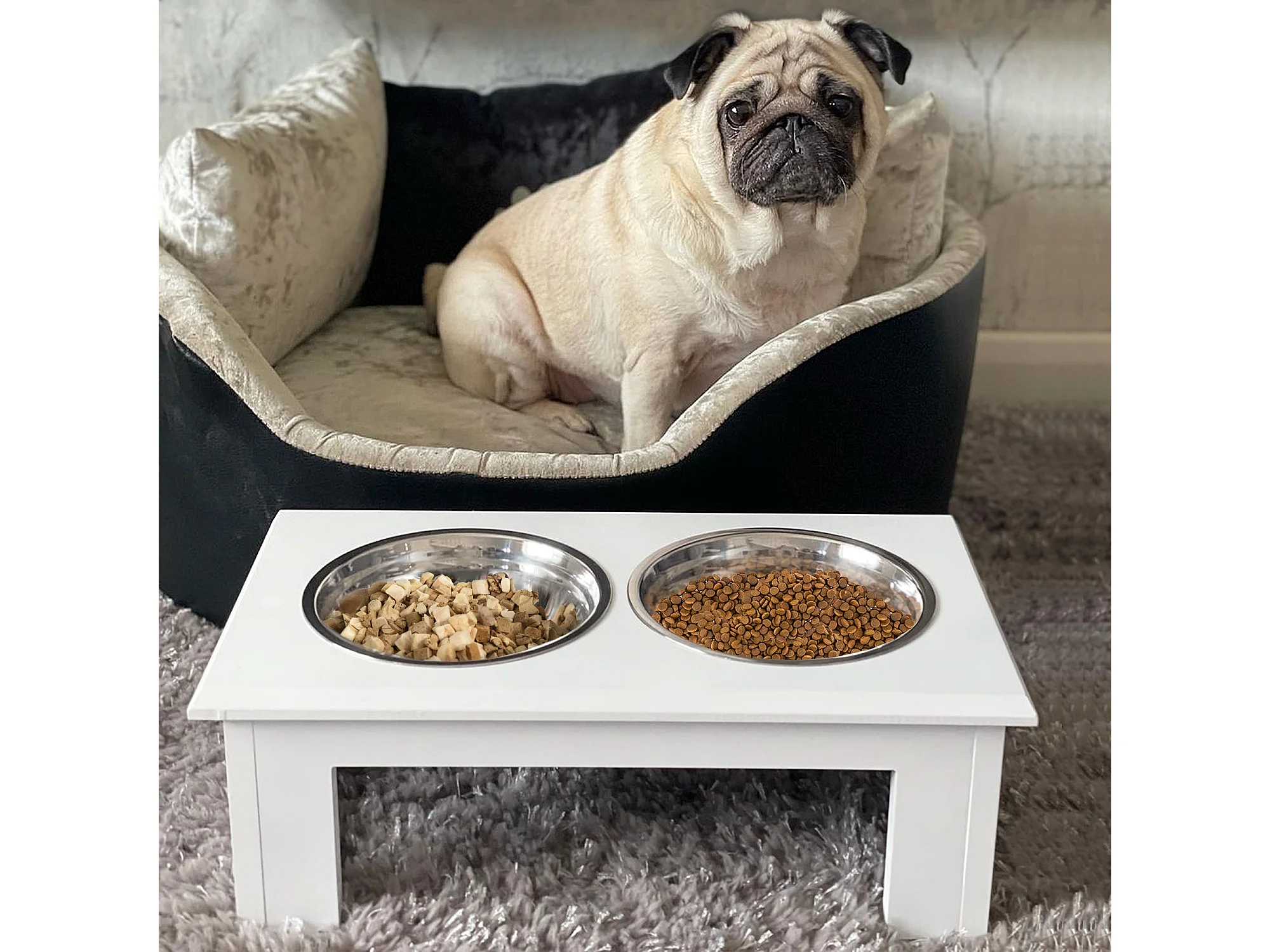 Comedero elevado para perros blanco 44x24x15 cm PawHut