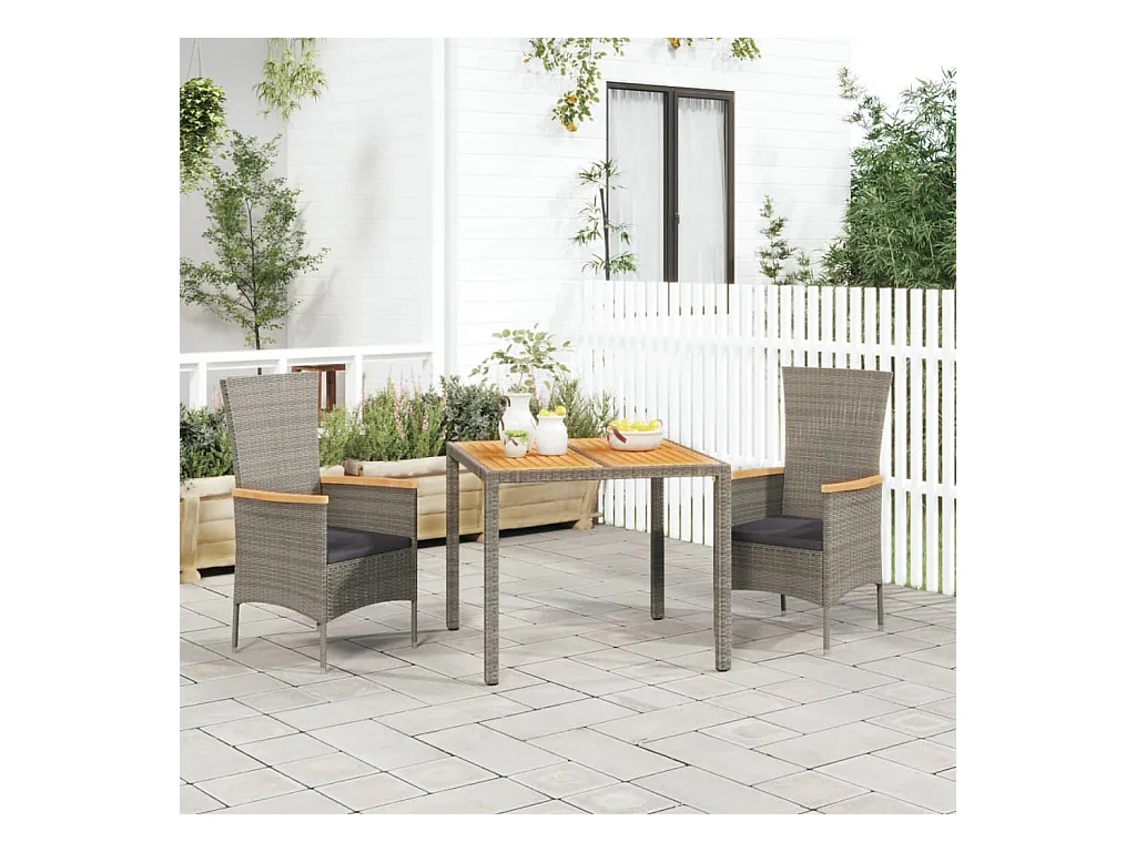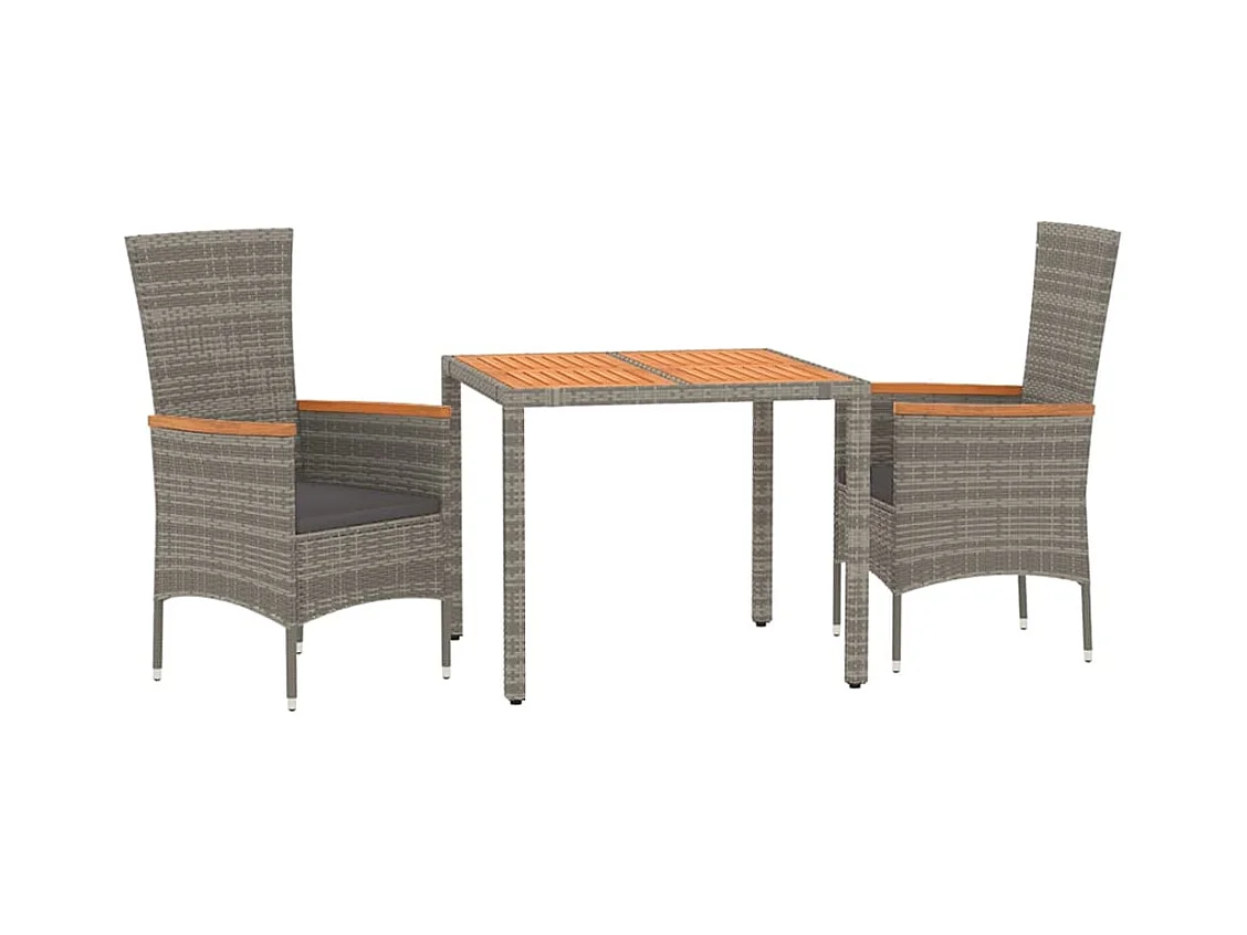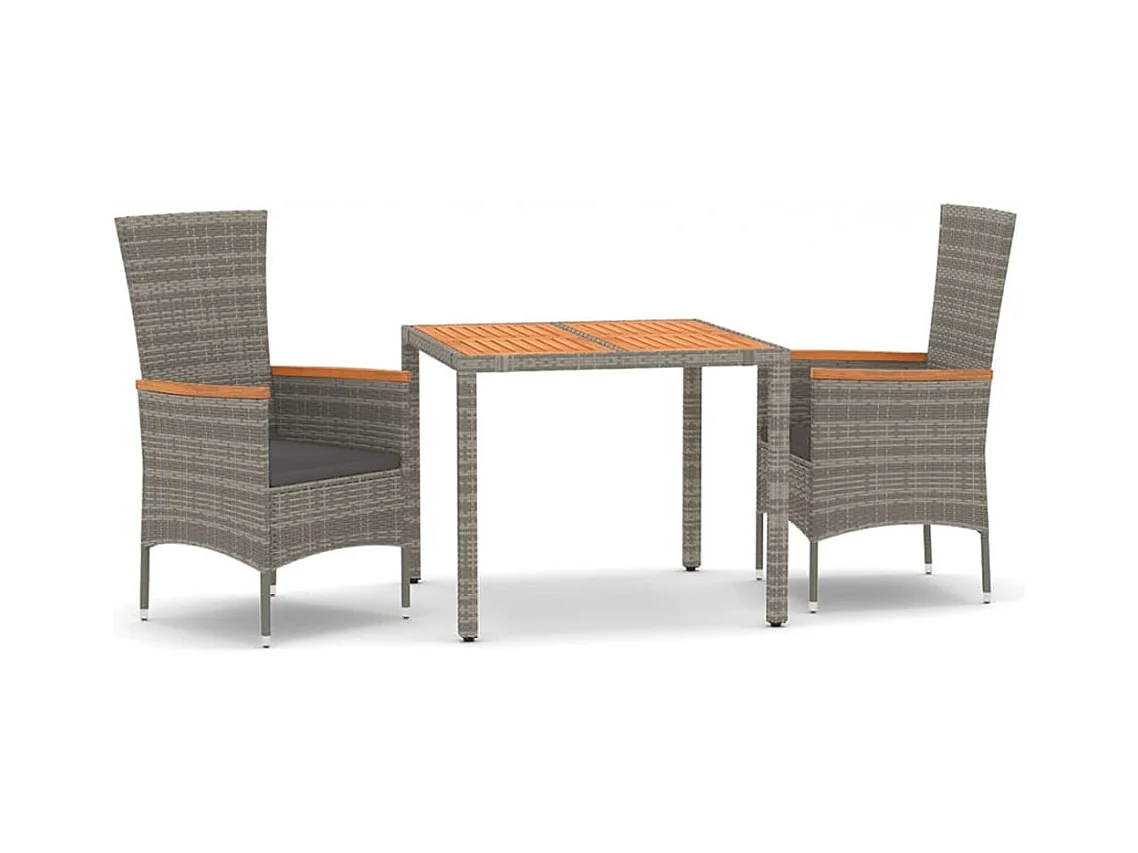 Comedor de jardín 3 piezas con cojines ratán sintético gris YOE42628