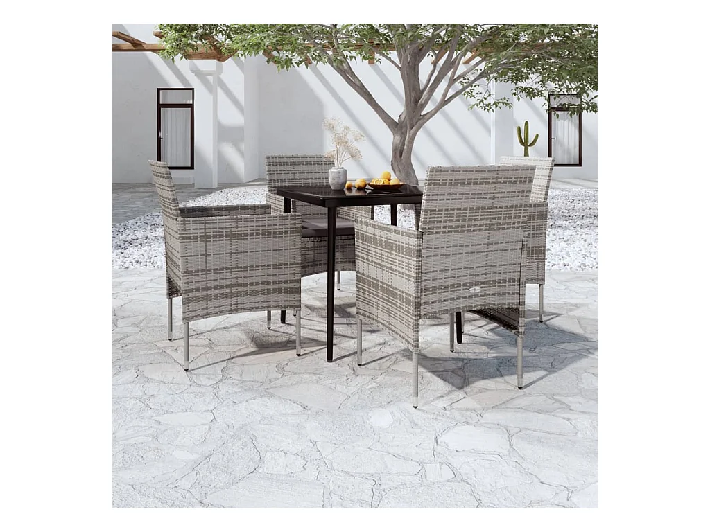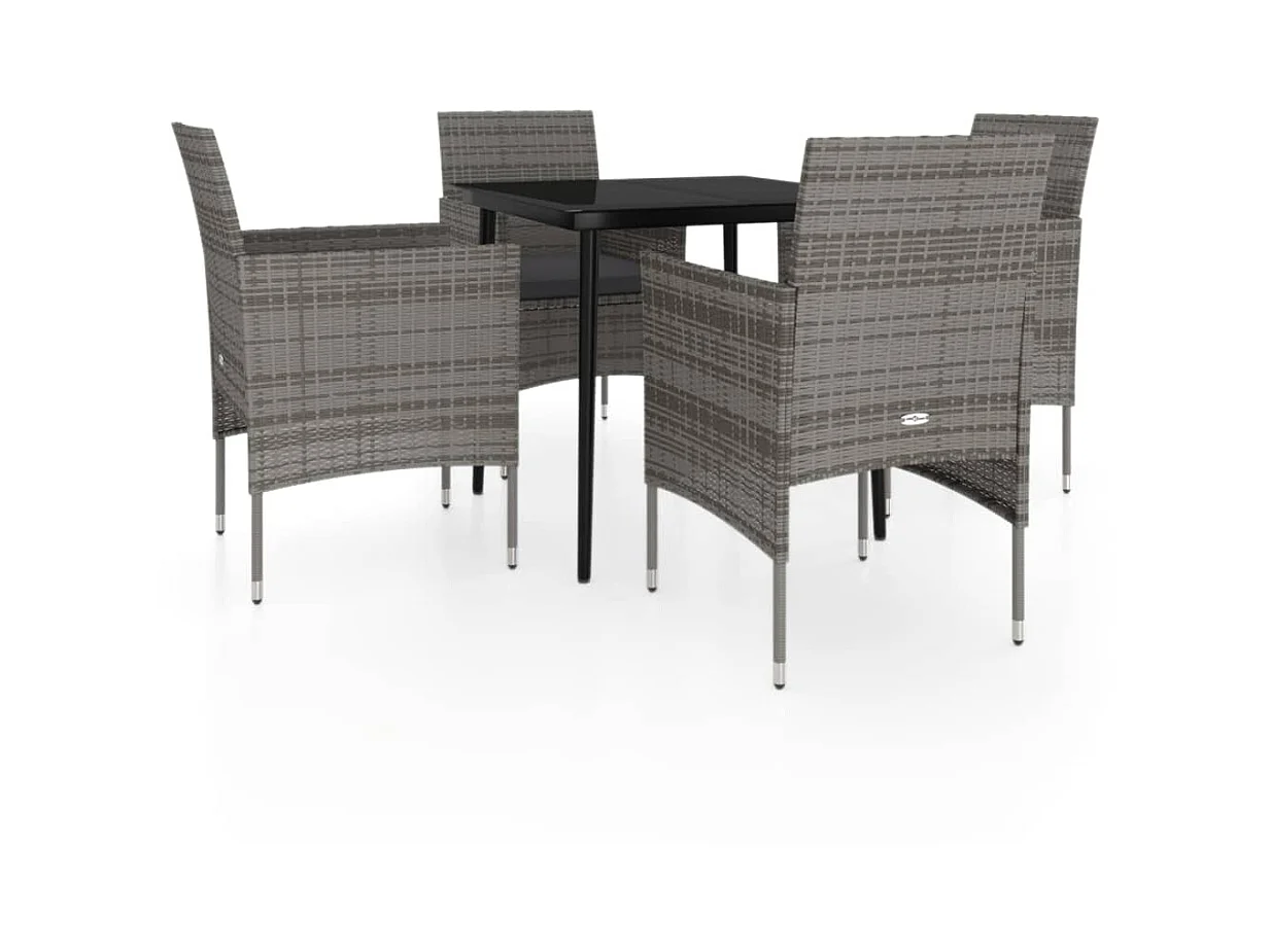 Comedor de jardín 5 piezas ratán sintético y vidrio gris YOE54456
