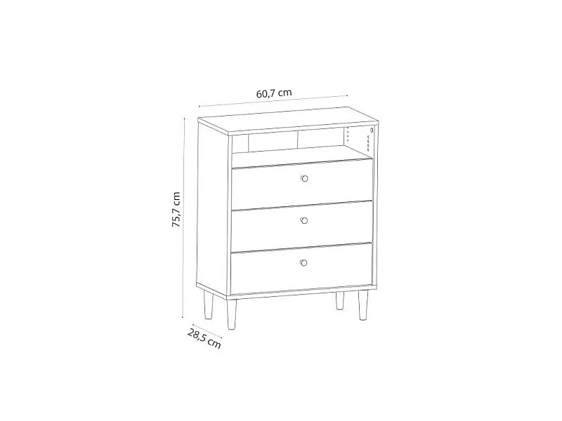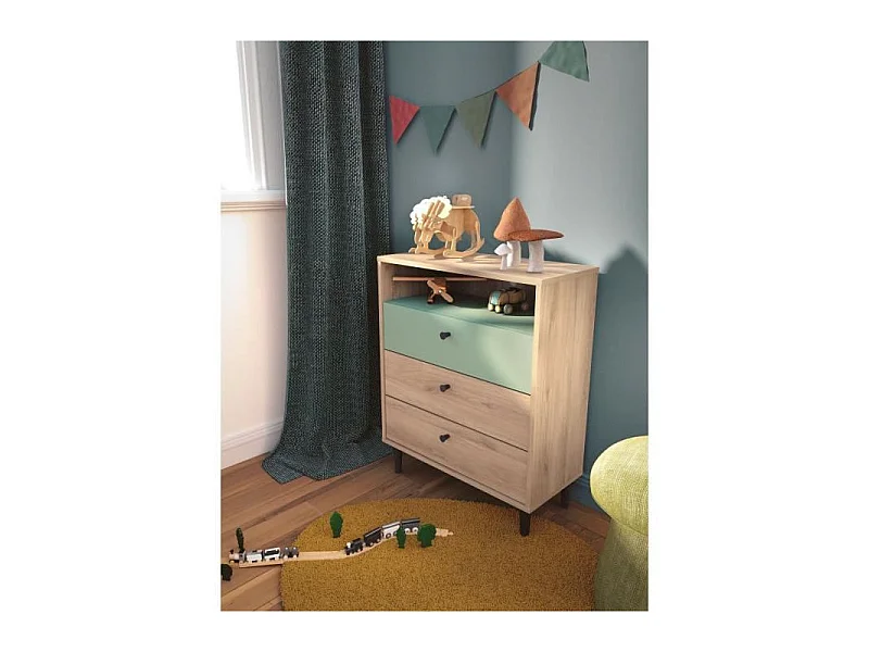 Cómoda 3 cajones 1 compartimiento Kocot Kids Victor - Blanco y Roble
