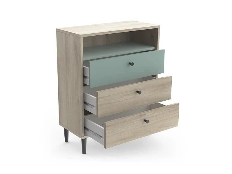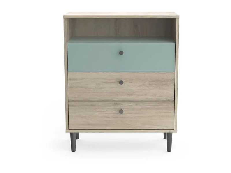 Cómoda ARTY 3 cajones roble Kronberg y melamina verde grisáceo, nicho integrado, L 60,7 x P 28,5 x H 75,7 cm
