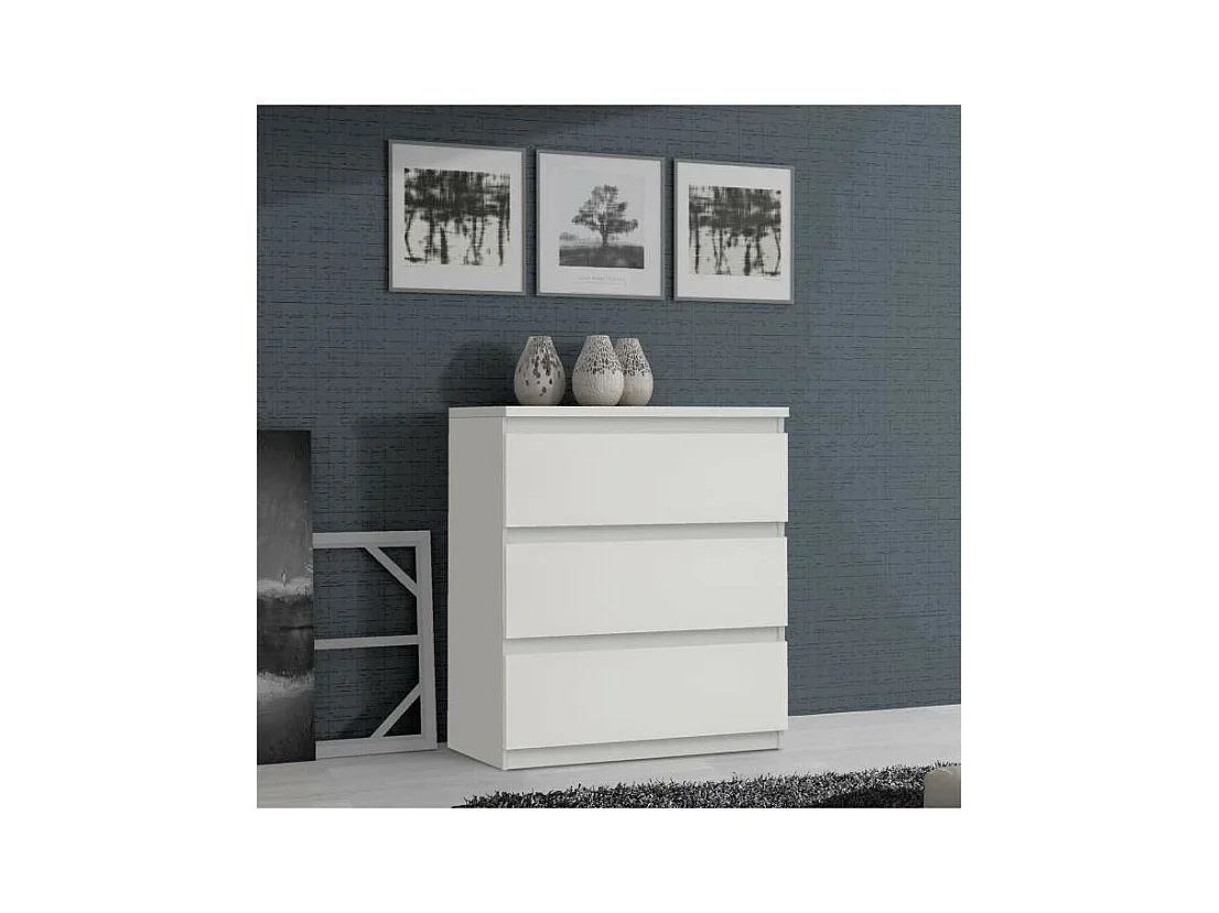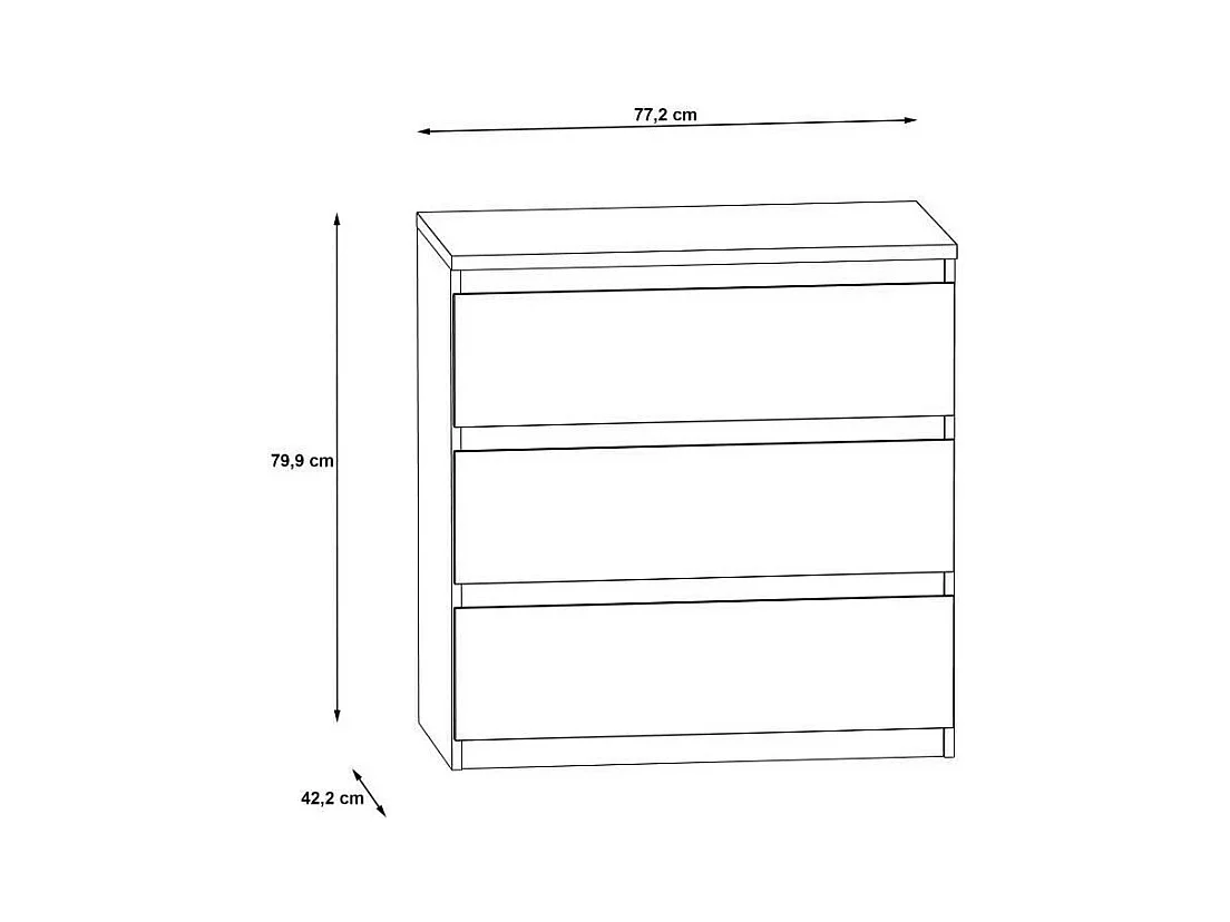 Cómoda CHELSEA de 3 cajones - Color blanco mate - 77,2 x 42 x 79,9 cm