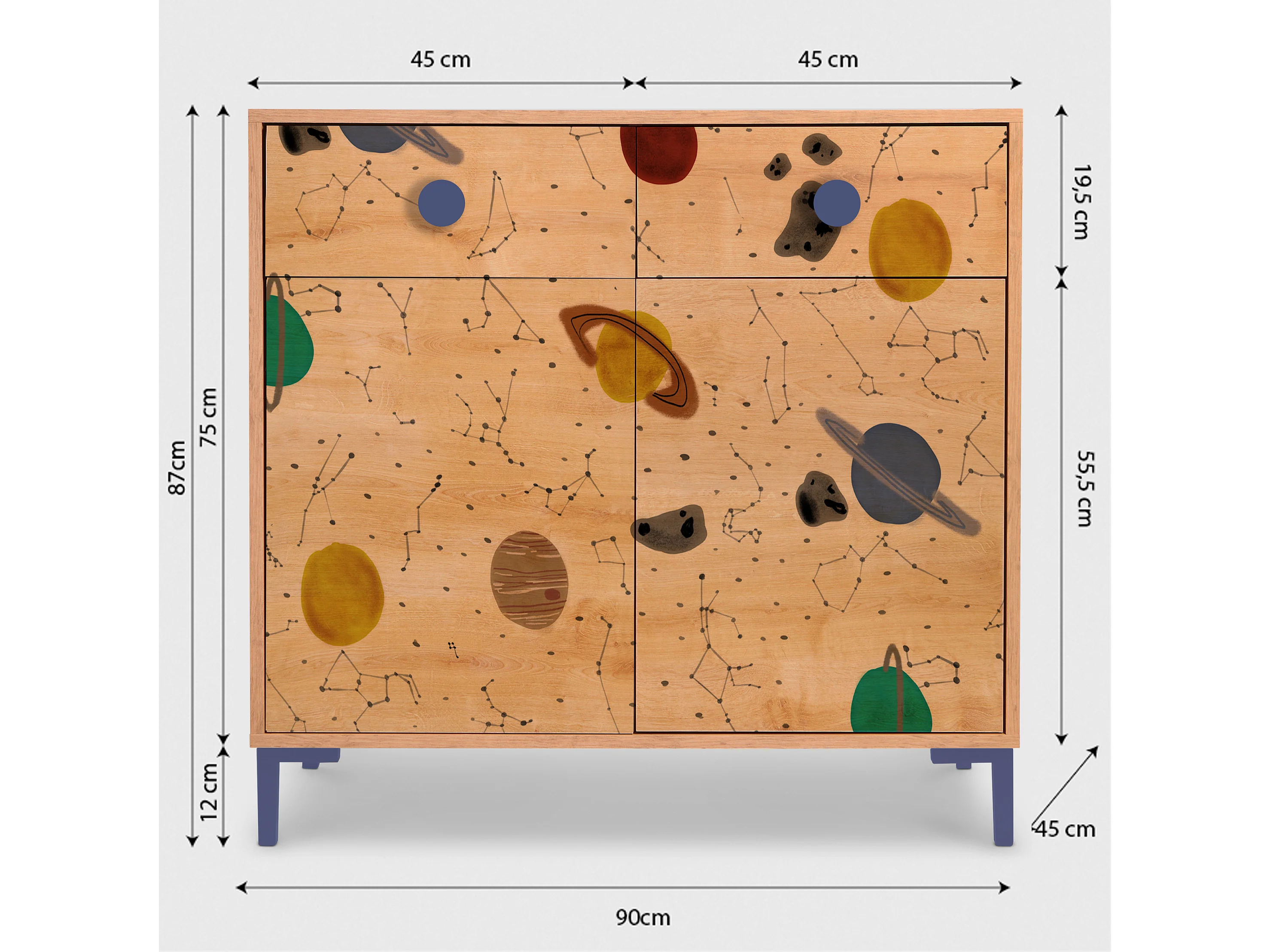 Cómoda 2 puertas 2 cajones color roble estampado espacio