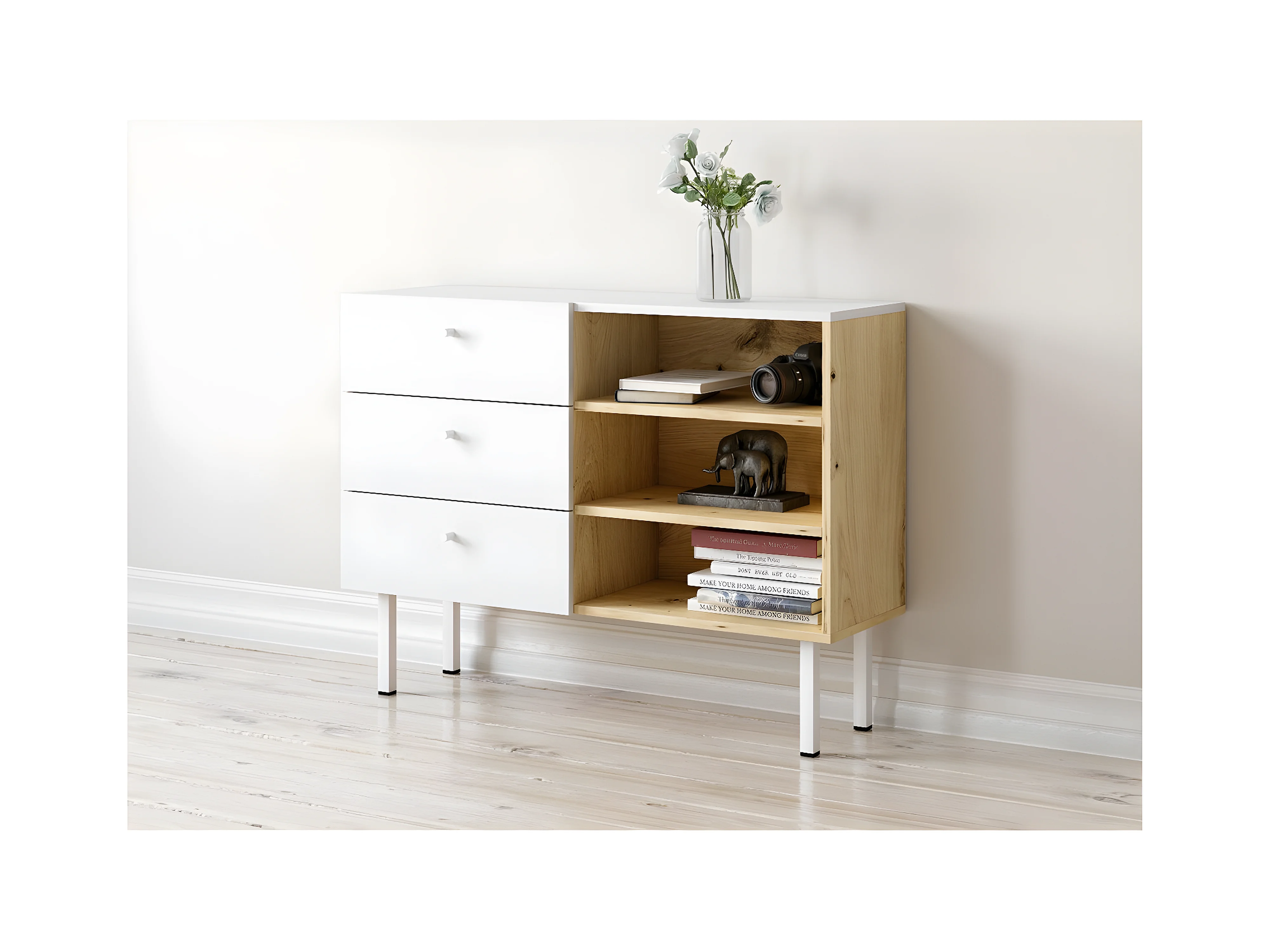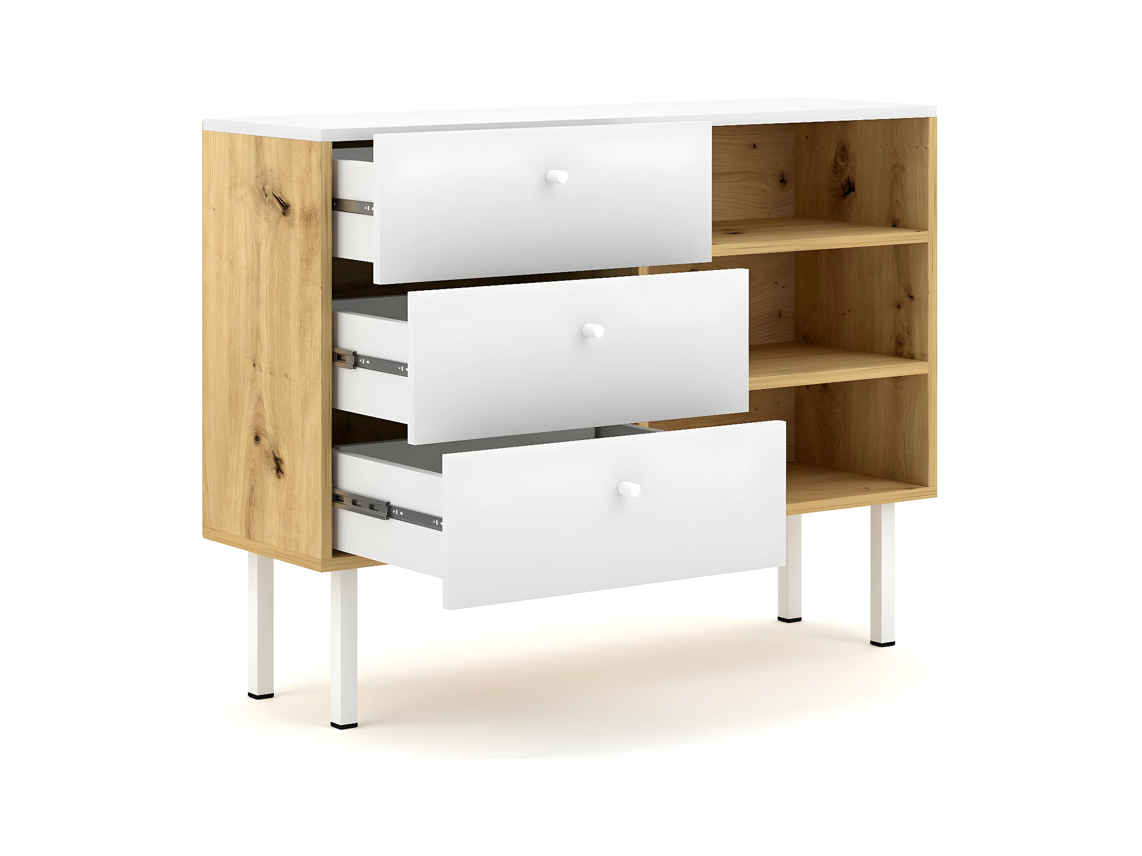 Cómoda 3 cajones 3 baldas - Diseño moderno - 100 cm