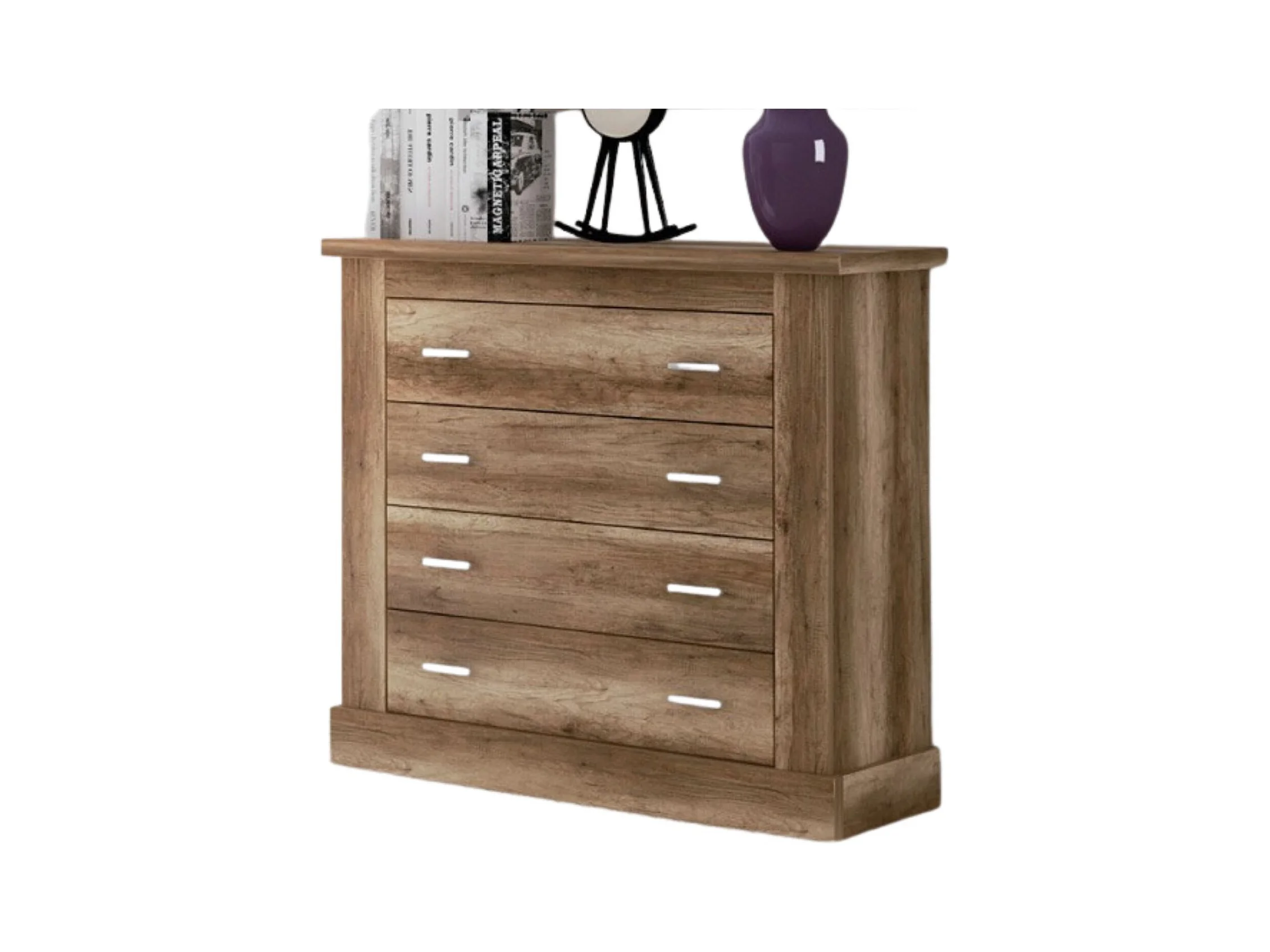 Cómoda de Dormitorio Moderna 70x97x40 cm – 4 Cajones con Guías Suaves – Color Roble Artesano