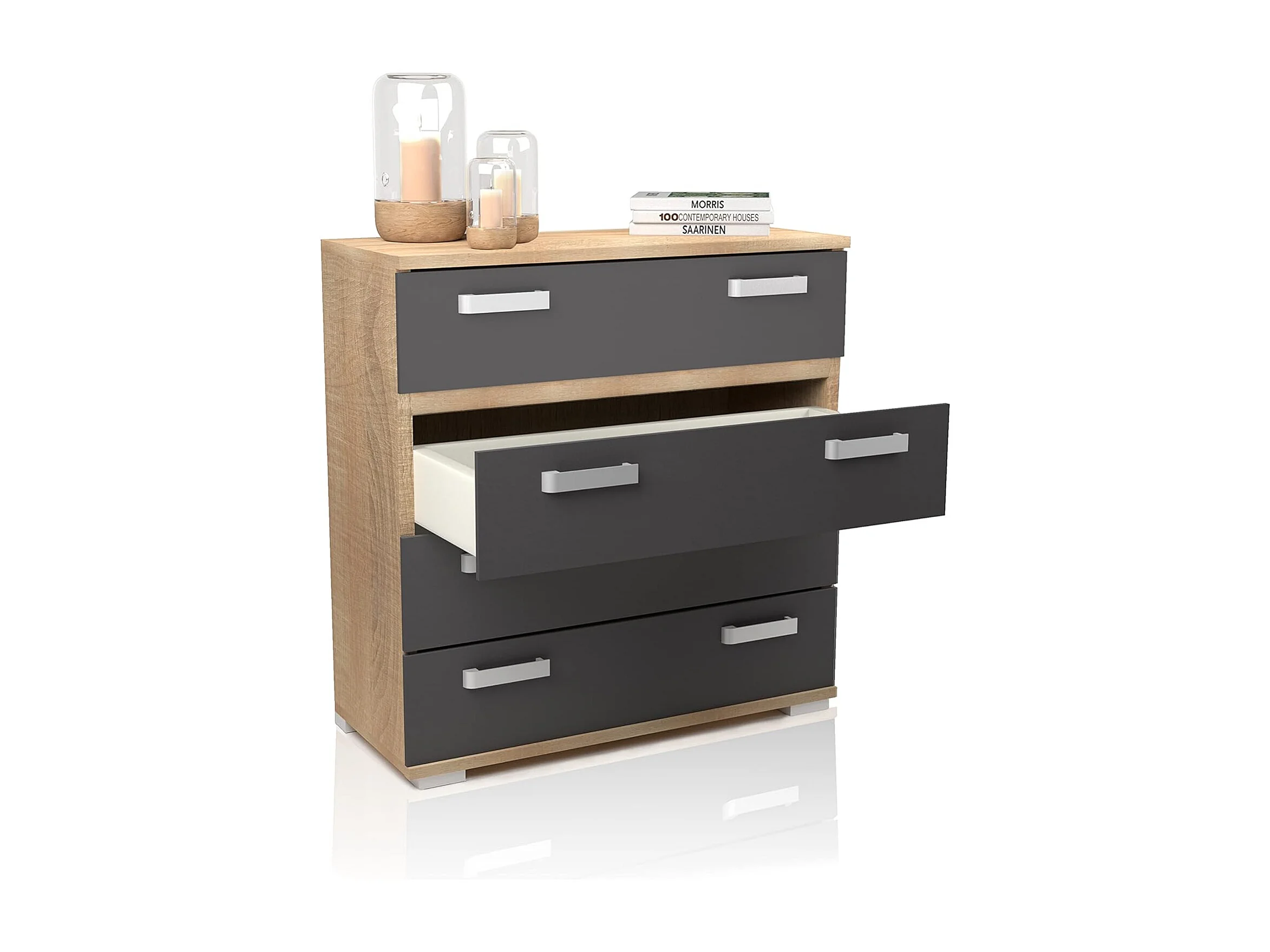 Cómoda 4 Cajones, Mueble Almacenaje Dormitorio, Color Cambria y Grafito, Medidas: 89 cm (Largo) x 89,6 cm (Alto) x 39,6 cm de (Fondo) Meyvaser