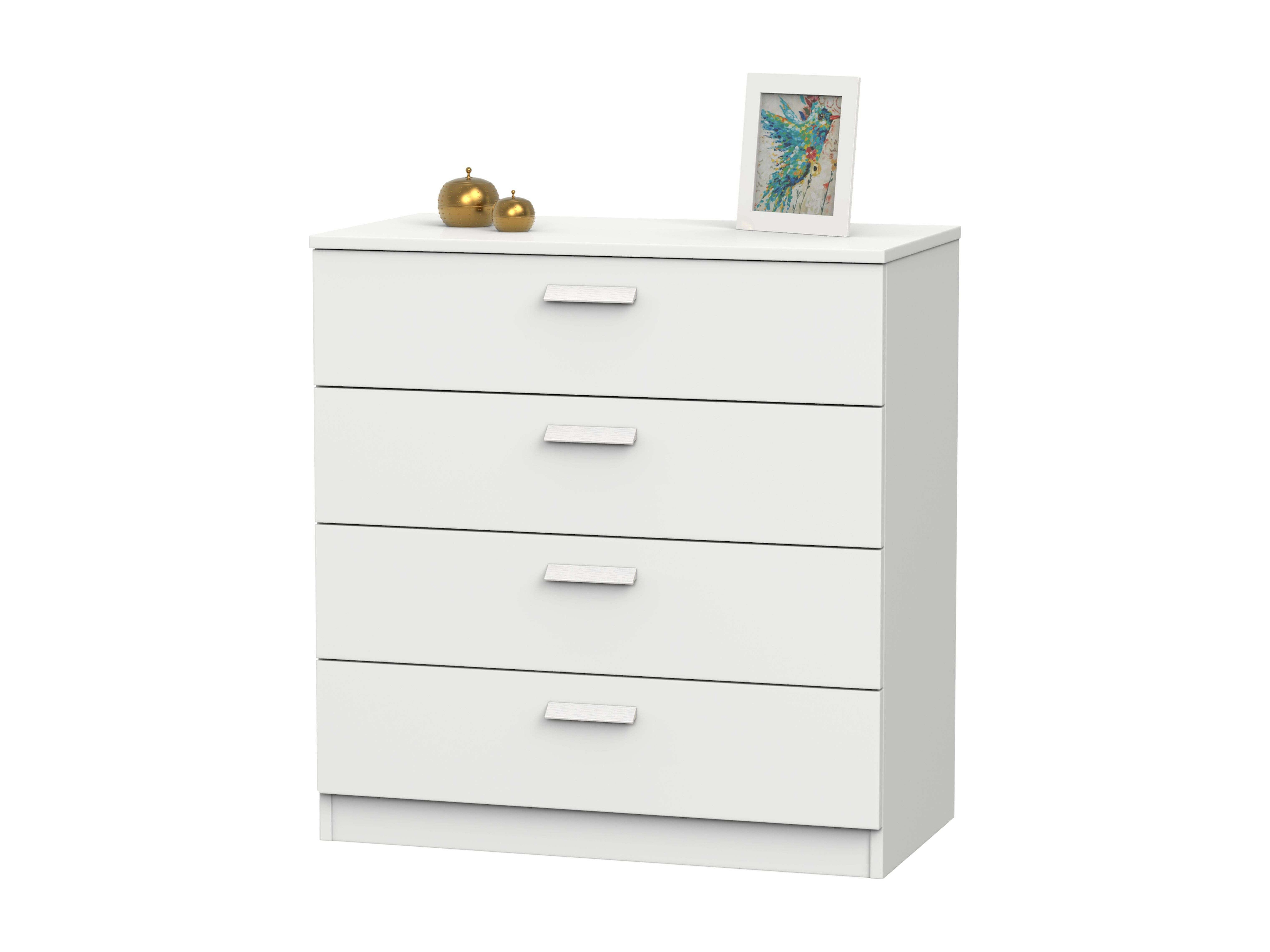 Cómoda Anzio 4 Cajones Madera Pino Blanco Mate 80 cm