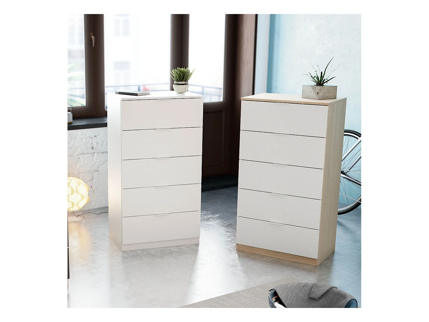 Cómoda 5 cajones Nilo Color Blanco, 60 cm (Ancho) 40 cm (Profundo) 110 cm (Altura)