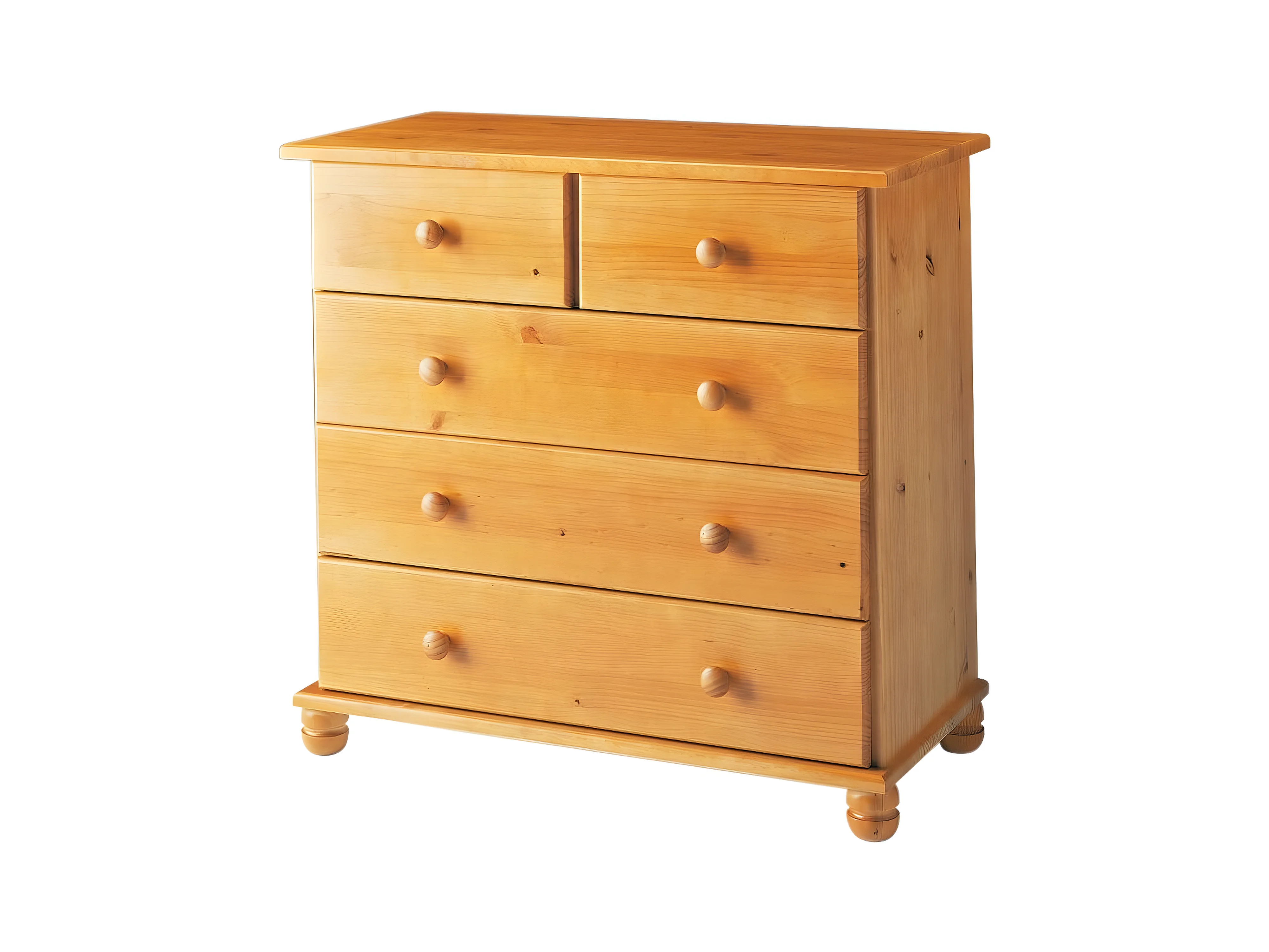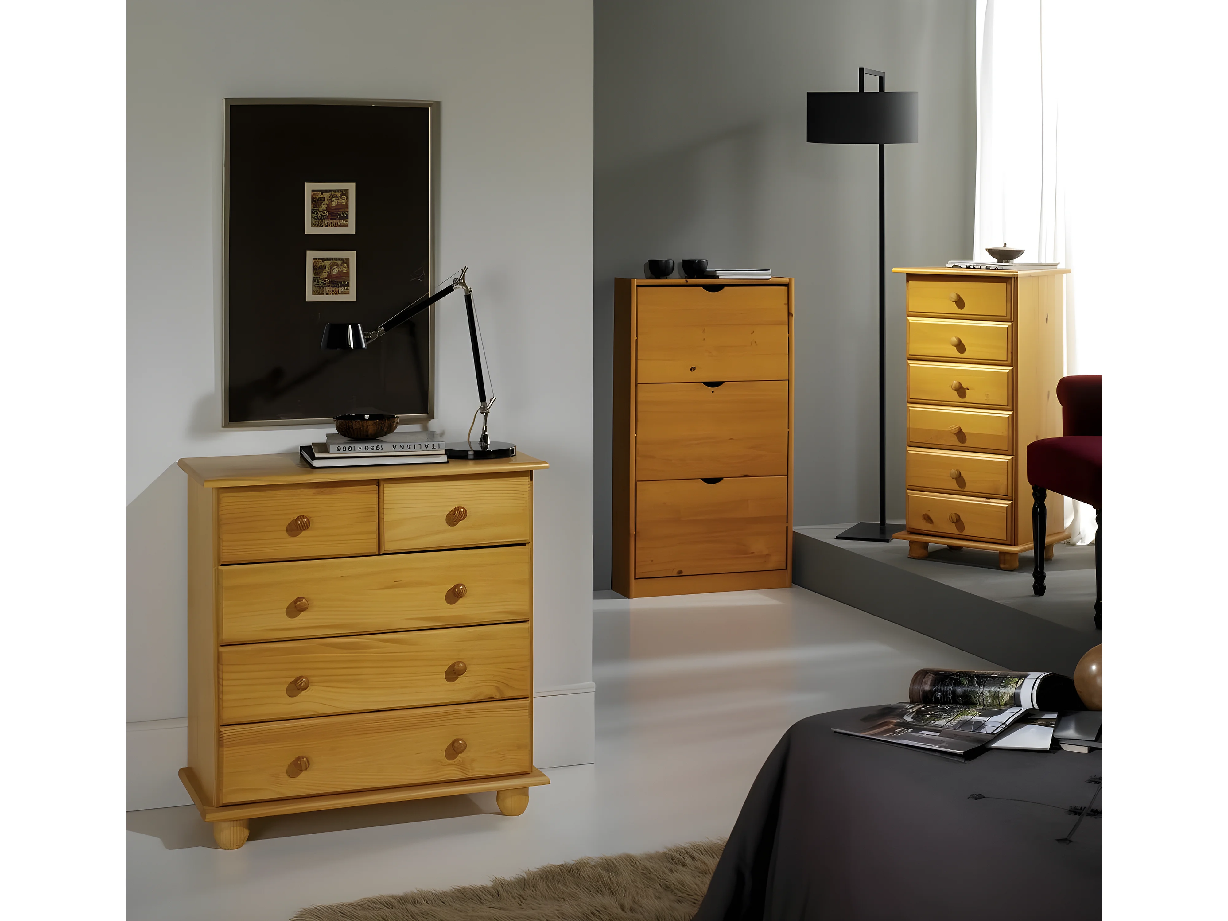 cómoda 5 cajones , pino macizo, Moblit, serie Canet, medidas: (81x78x39) cm ( altoxanchoxfondo), color miel