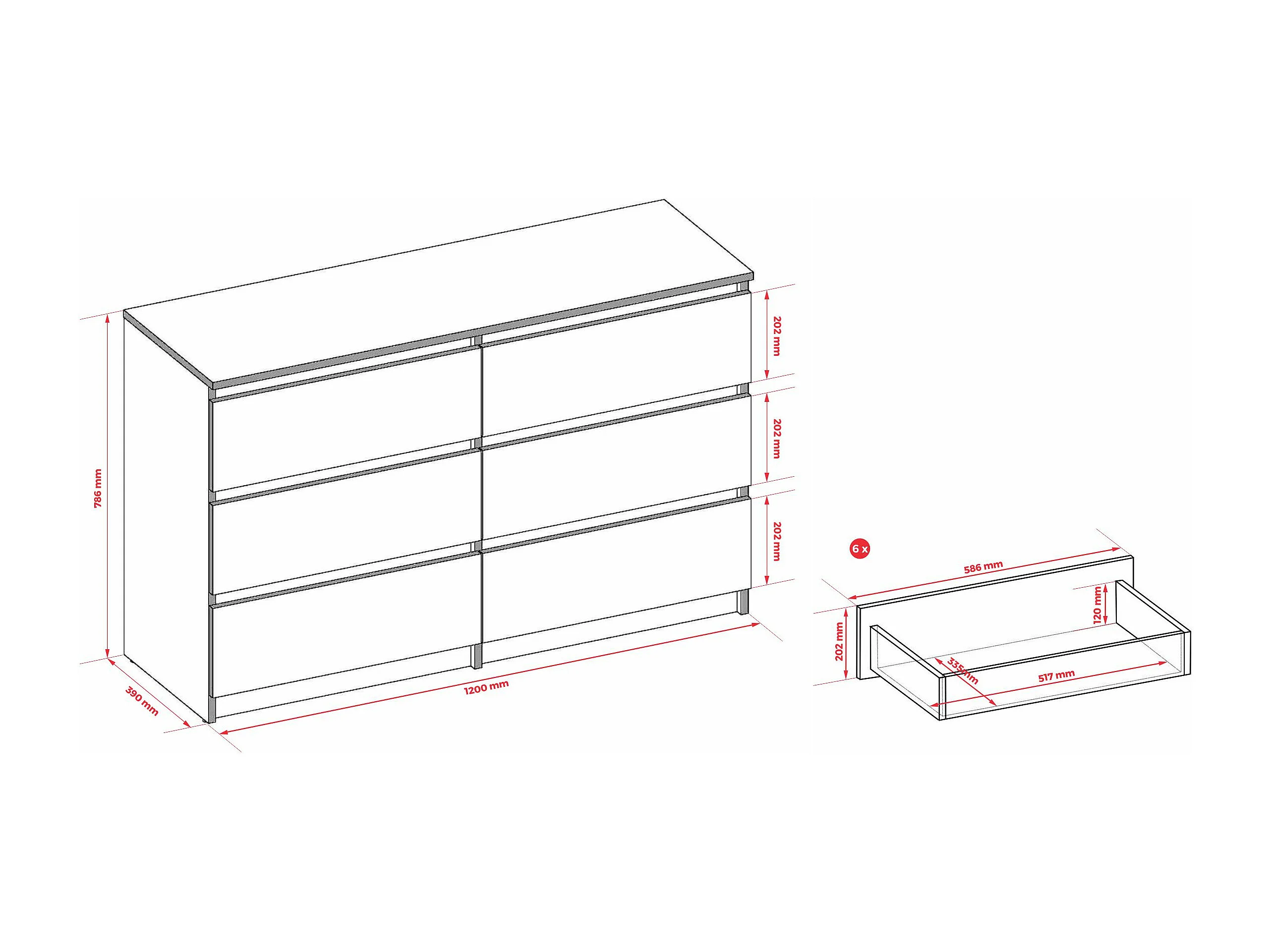 Cómoda: 6 cajones, cachemir, 120 x 79 x 39 cm