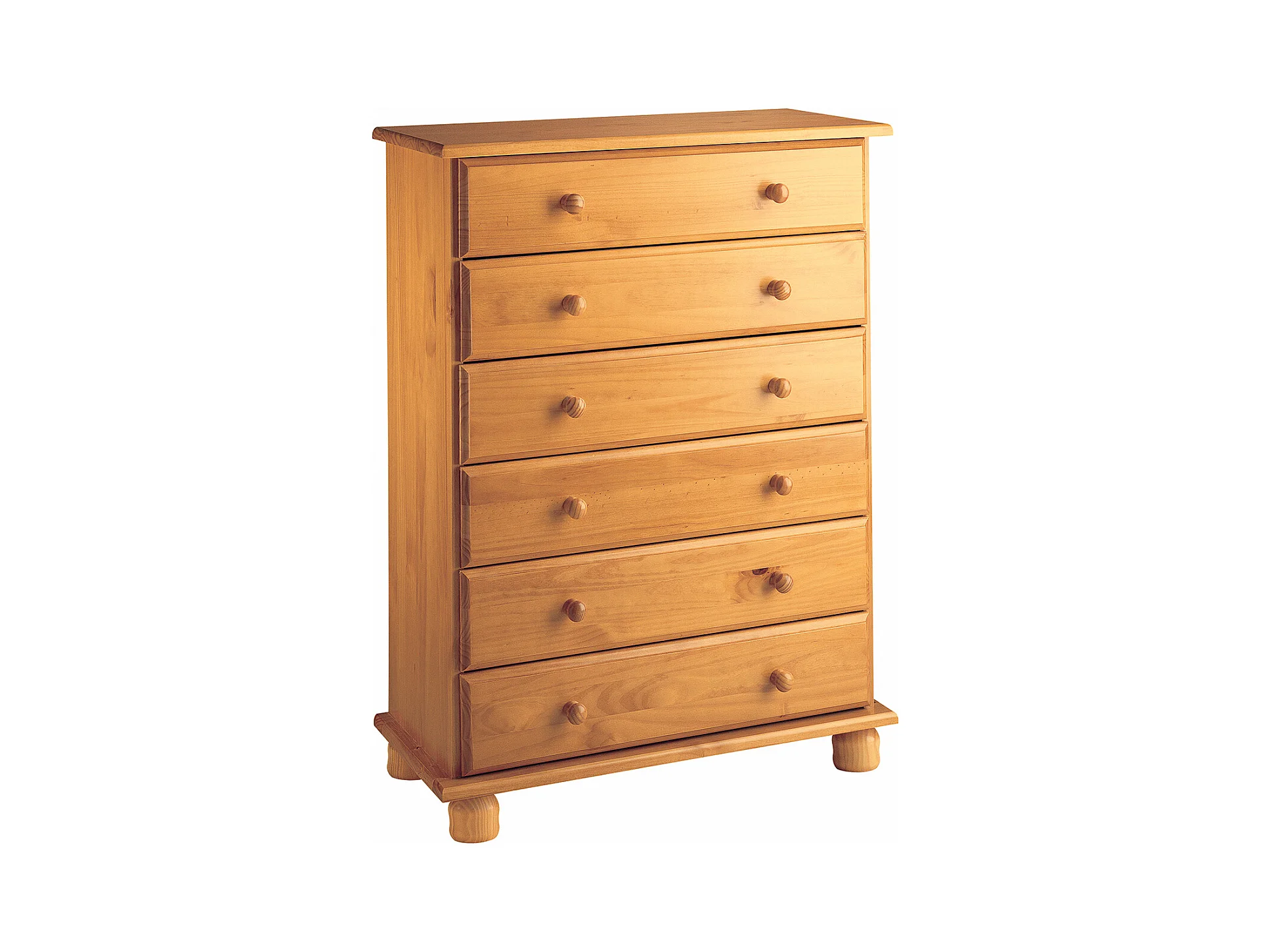 cómoda 6 cajones , pino macizo, Moblit, serie Canet, medidas: (100x78x39) cm ( altoxanchoxfondo), color miel