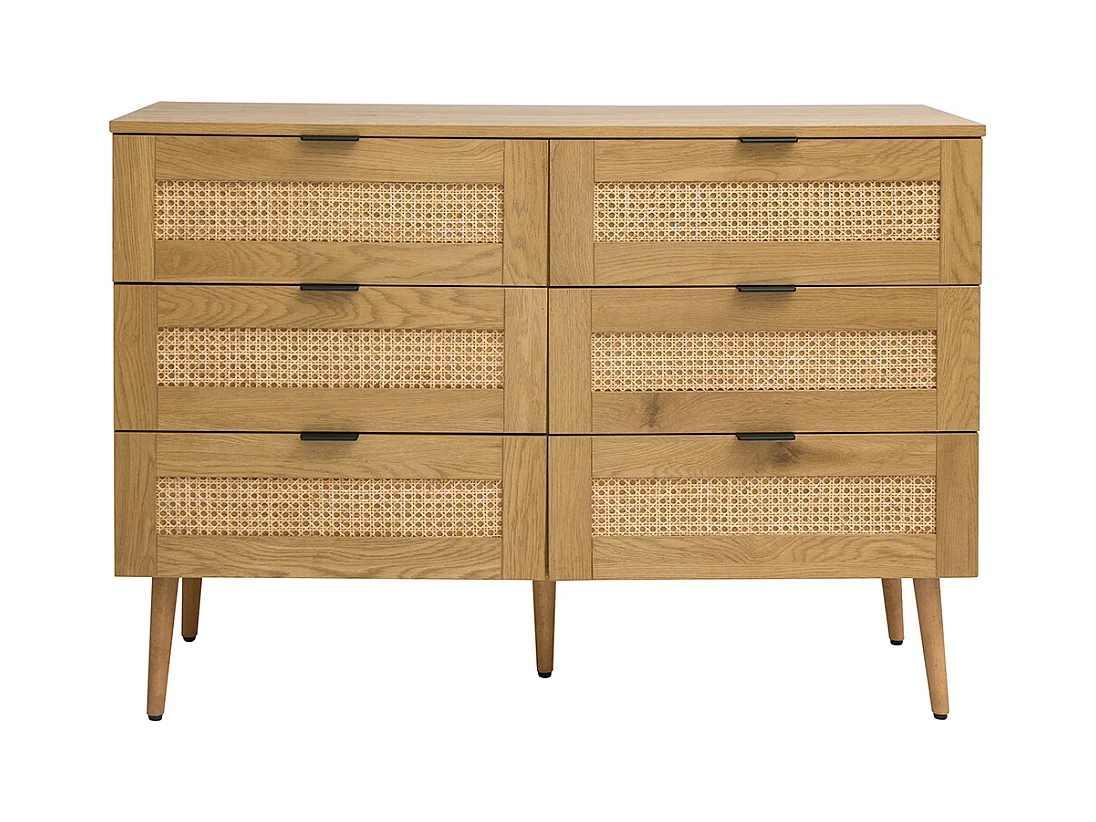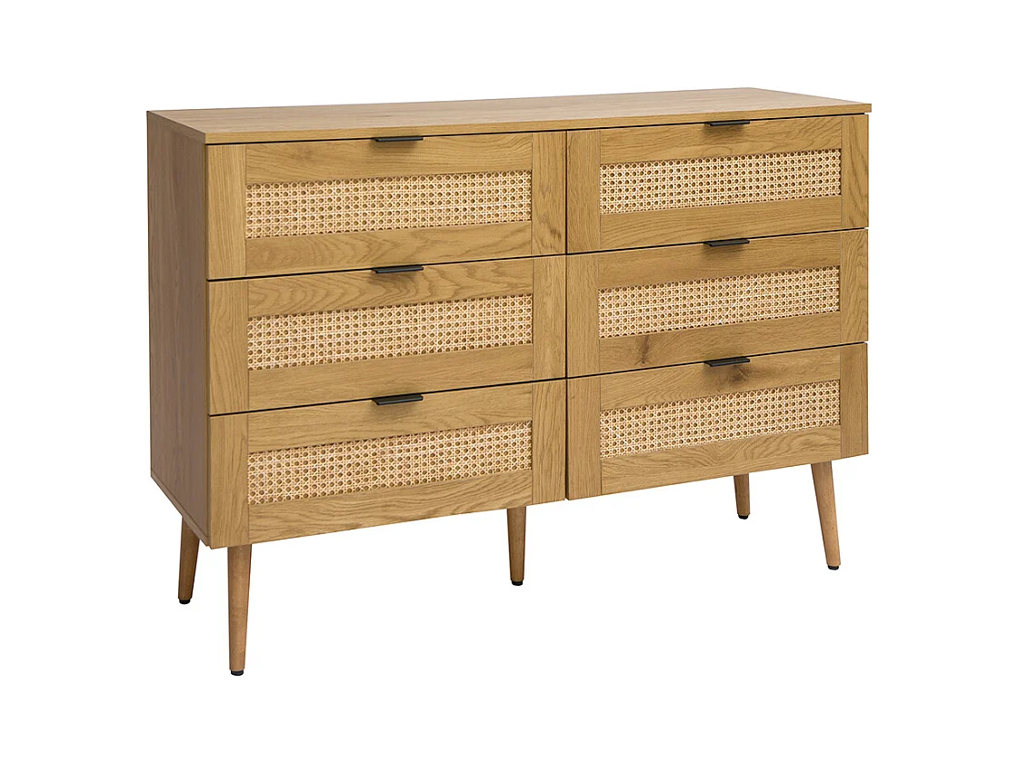 Cómoda acabado en madera clara, rejilla de ratán y metal negro 3 cajones L120 cm MANILLE