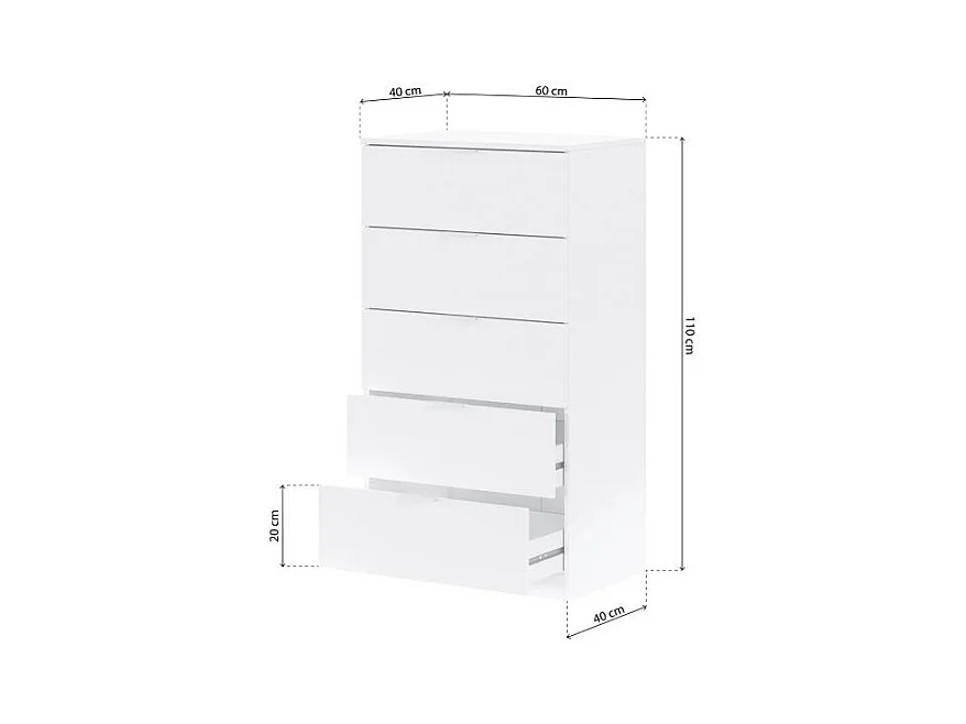 Sinfonier 5 cajones Modelo Maya en blanco 110 cm(alto)60 cm(ancho)40 cm(fondo)