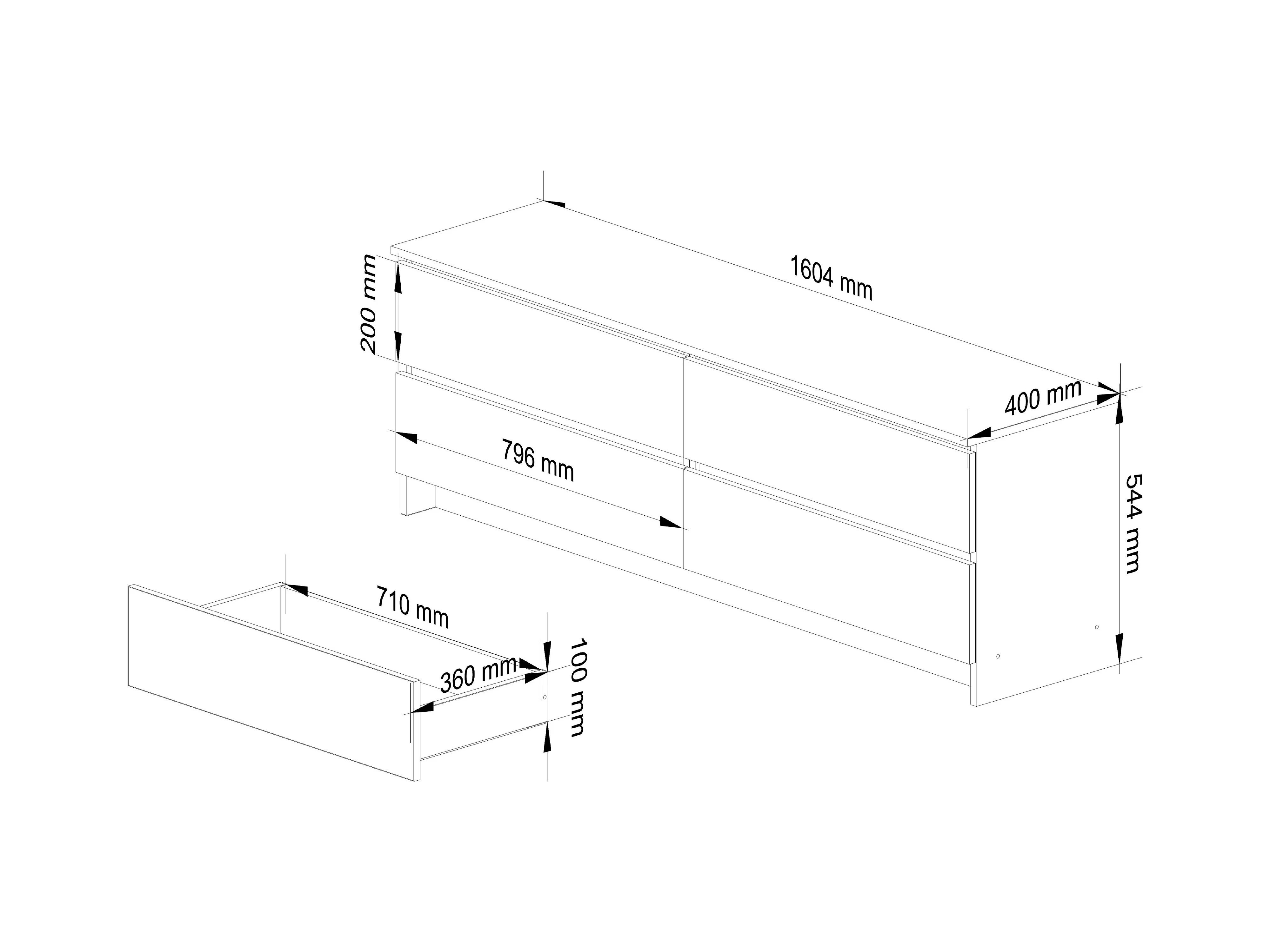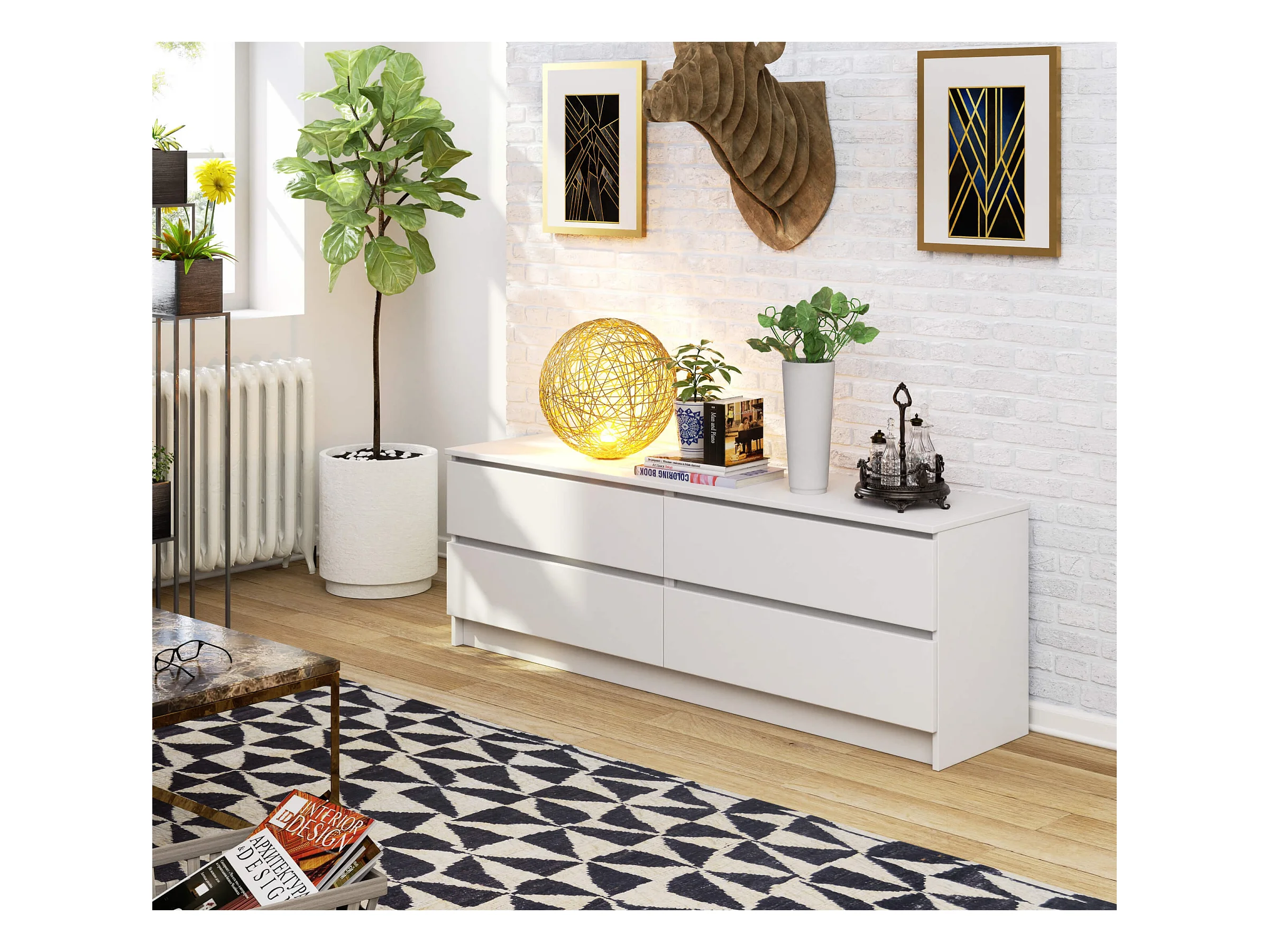 Cómoda AKORD K160 Blanco 160 cm 4 cajones frente en color Blanco 160x40x55 cm